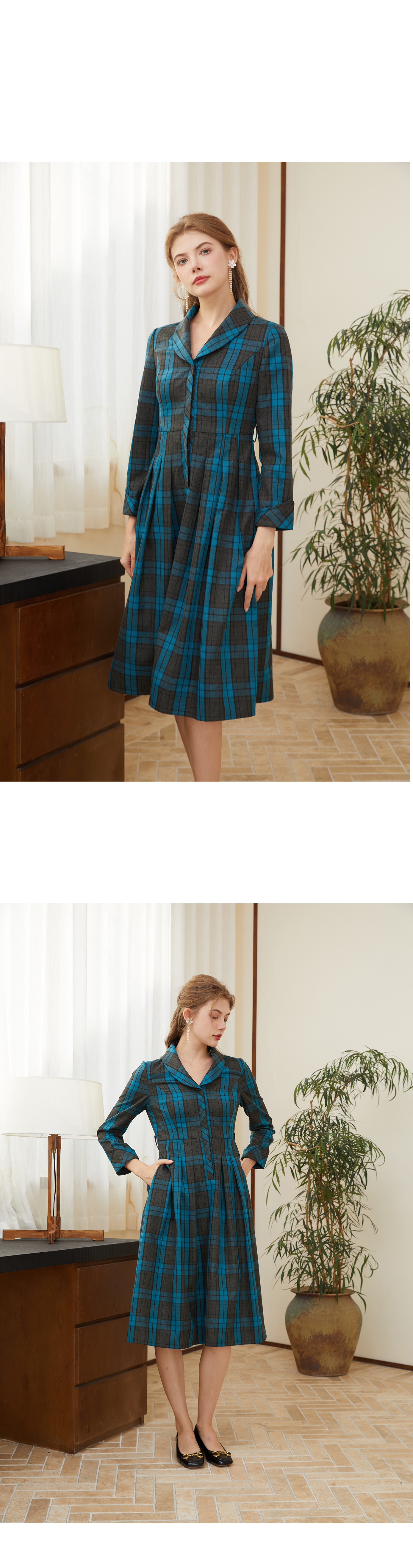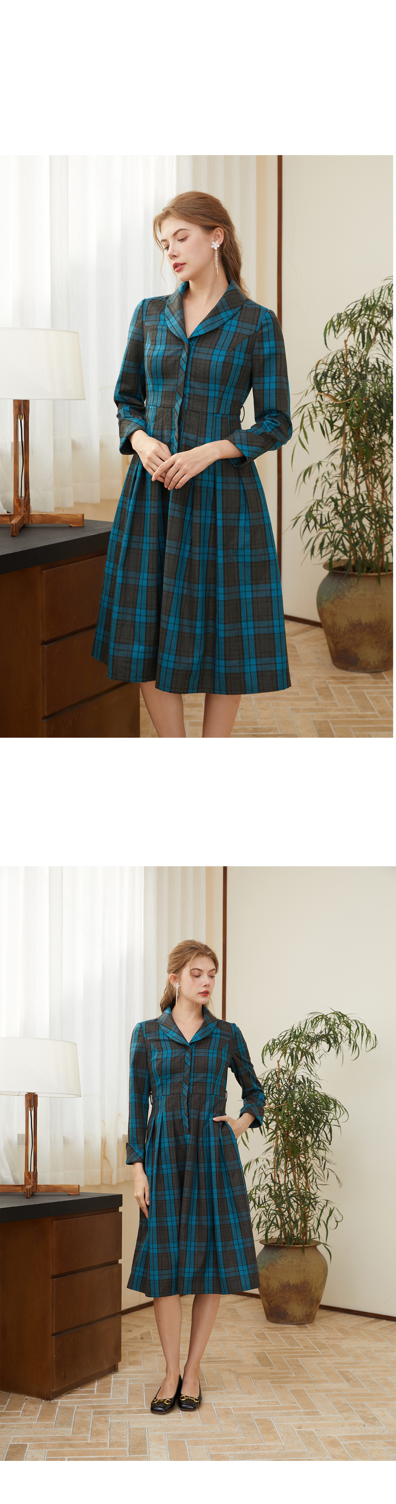 司歌格纹风衣裙收腰显瘦连衣裙R921230X