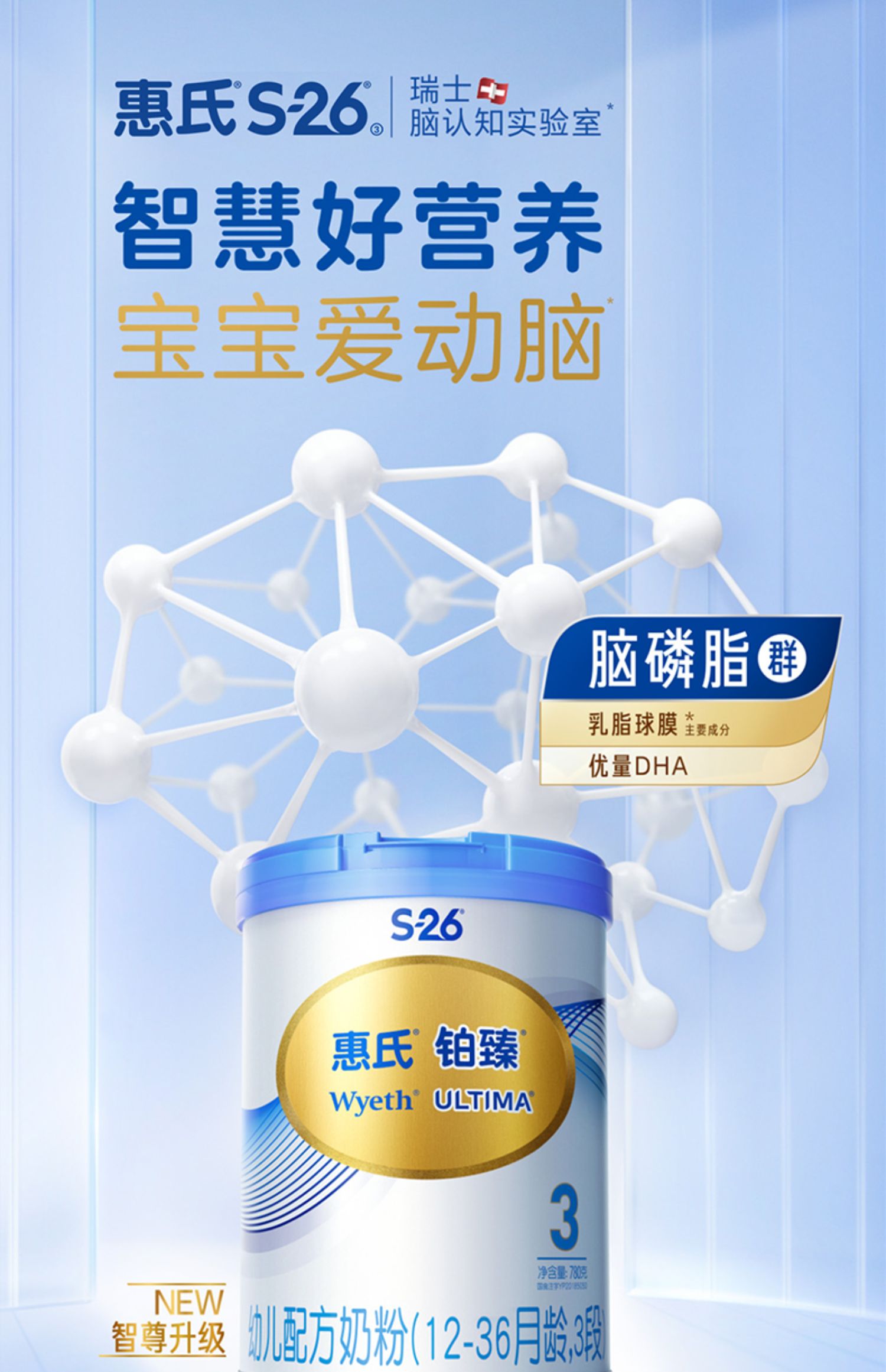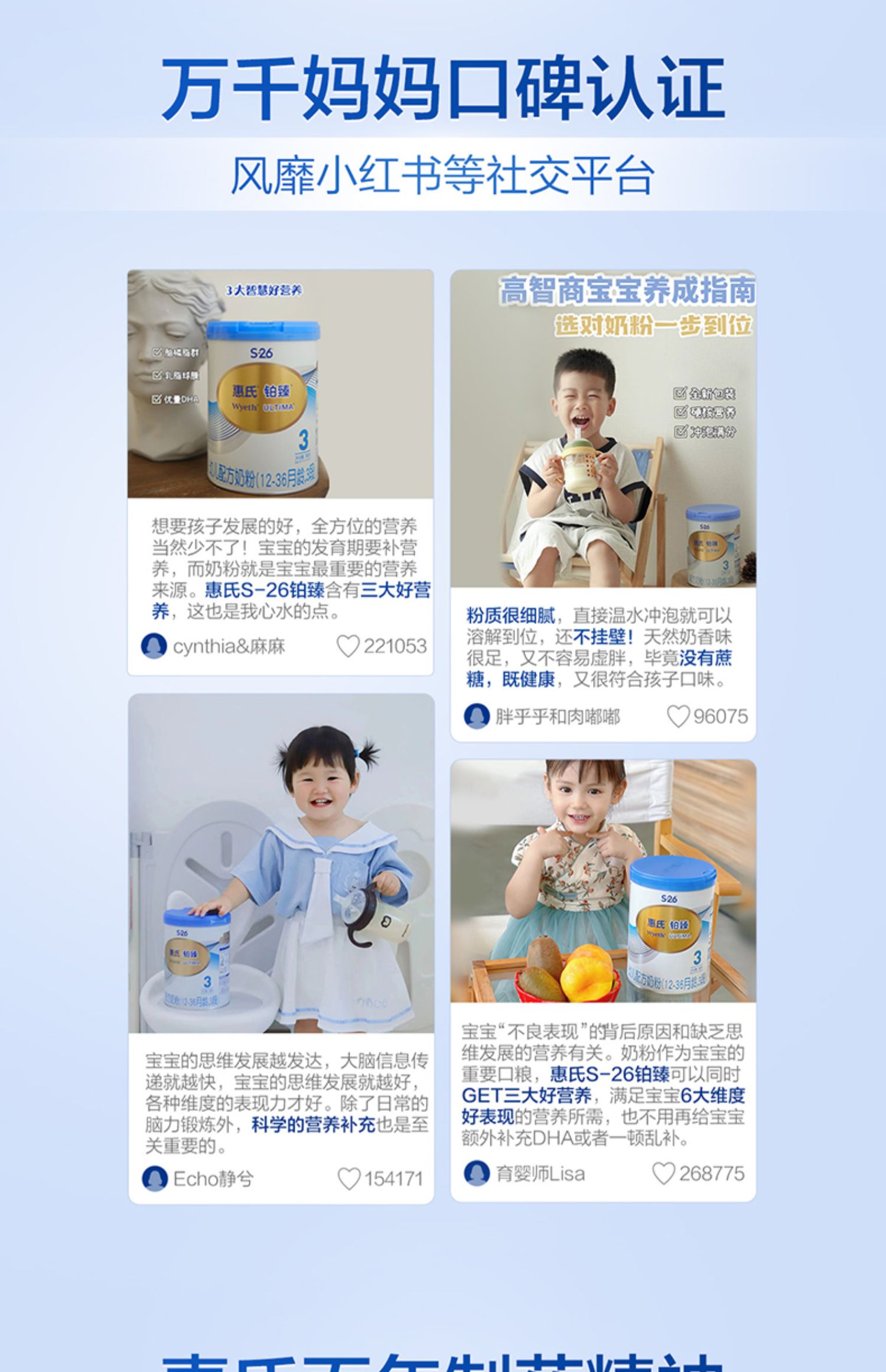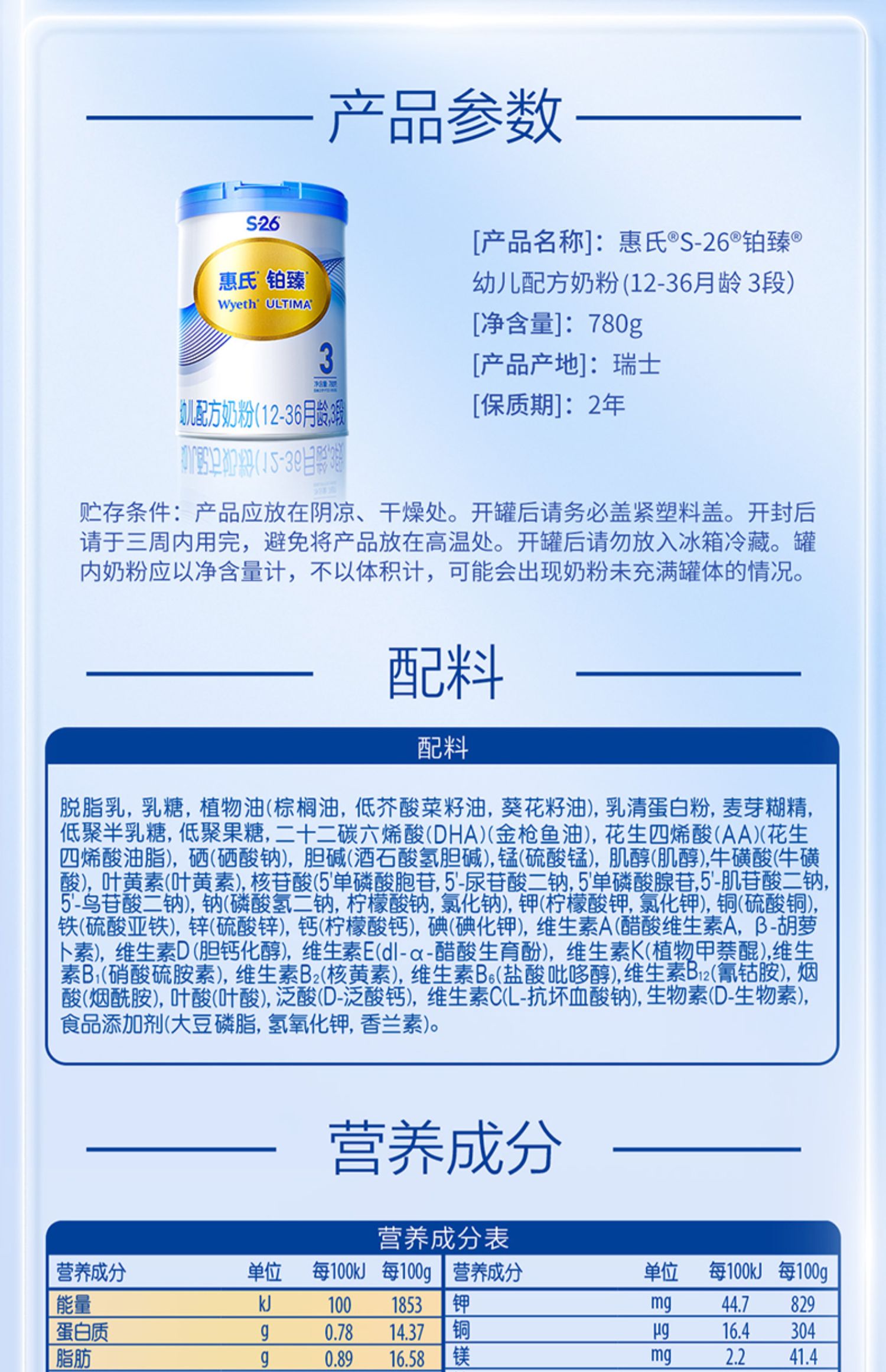 【整箱6罐】新国标惠氏铂臻3段婴儿奶粉780g 瑞士进口1-3岁婴幼儿配方牛奶粉/WYE-532831