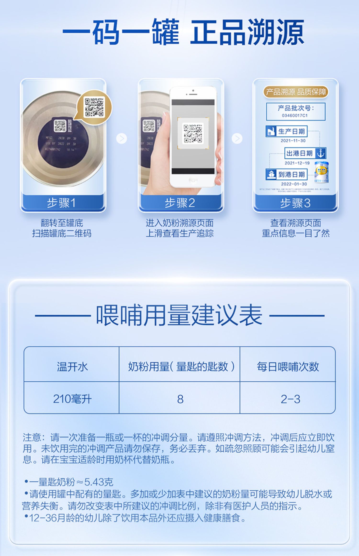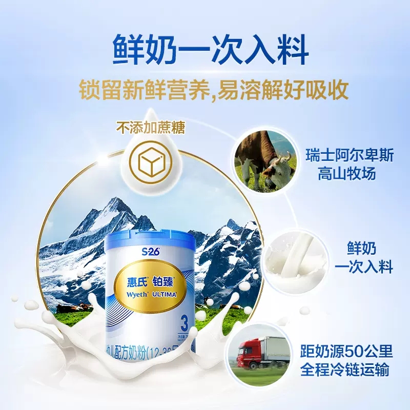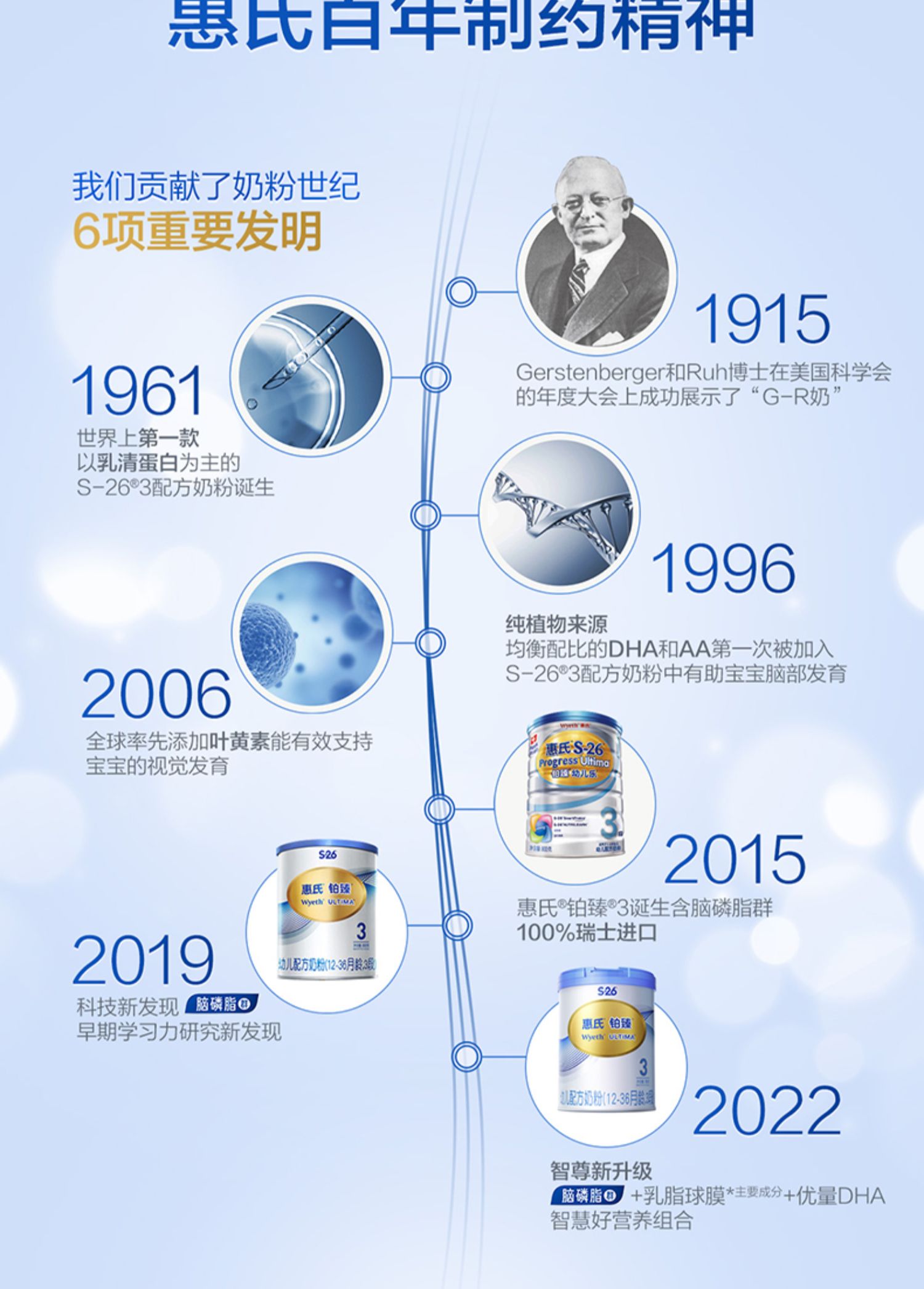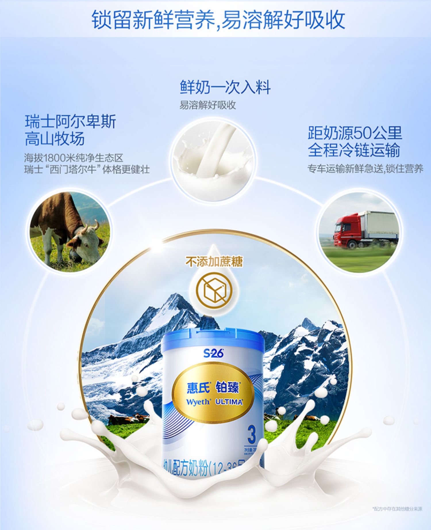 【整箱6罐】新国标惠氏铂臻3段婴儿奶粉780g 瑞士进口1-3岁婴幼儿配方牛奶粉/WYE-532831