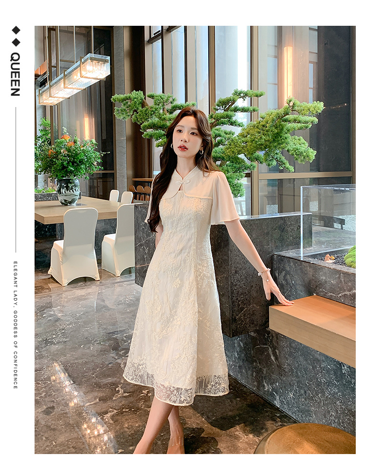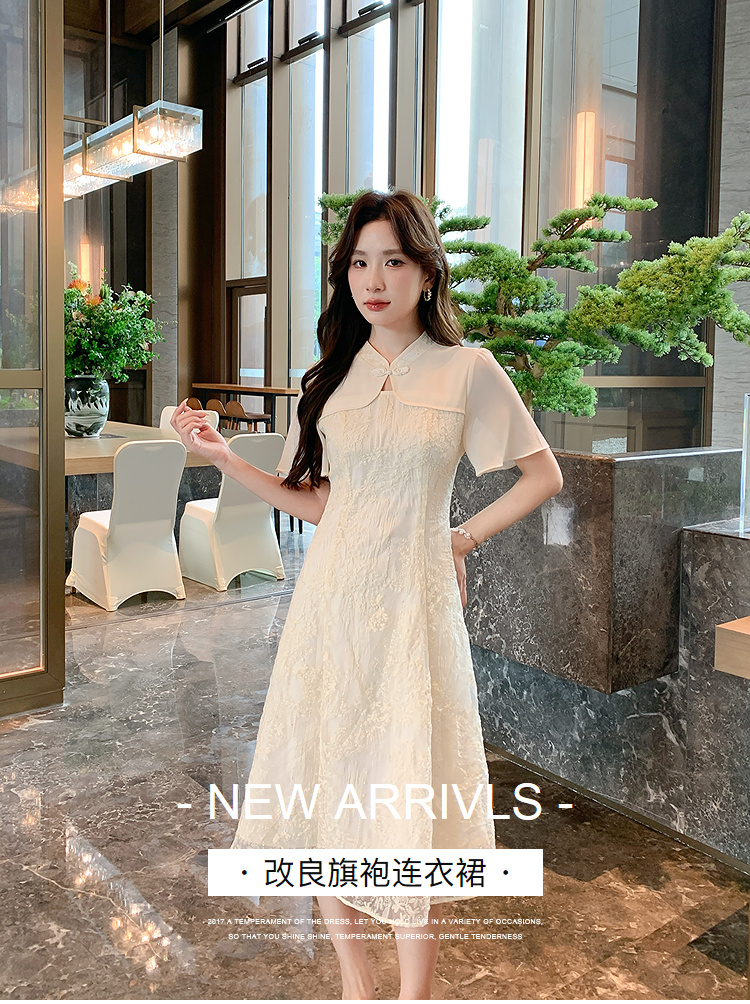 奢姿大码女装2026夏季蝴蝶提花改良旗袍连衣裙胖妹妹温柔风A字裙9962894513
