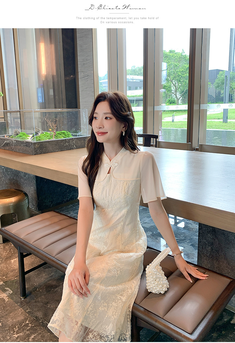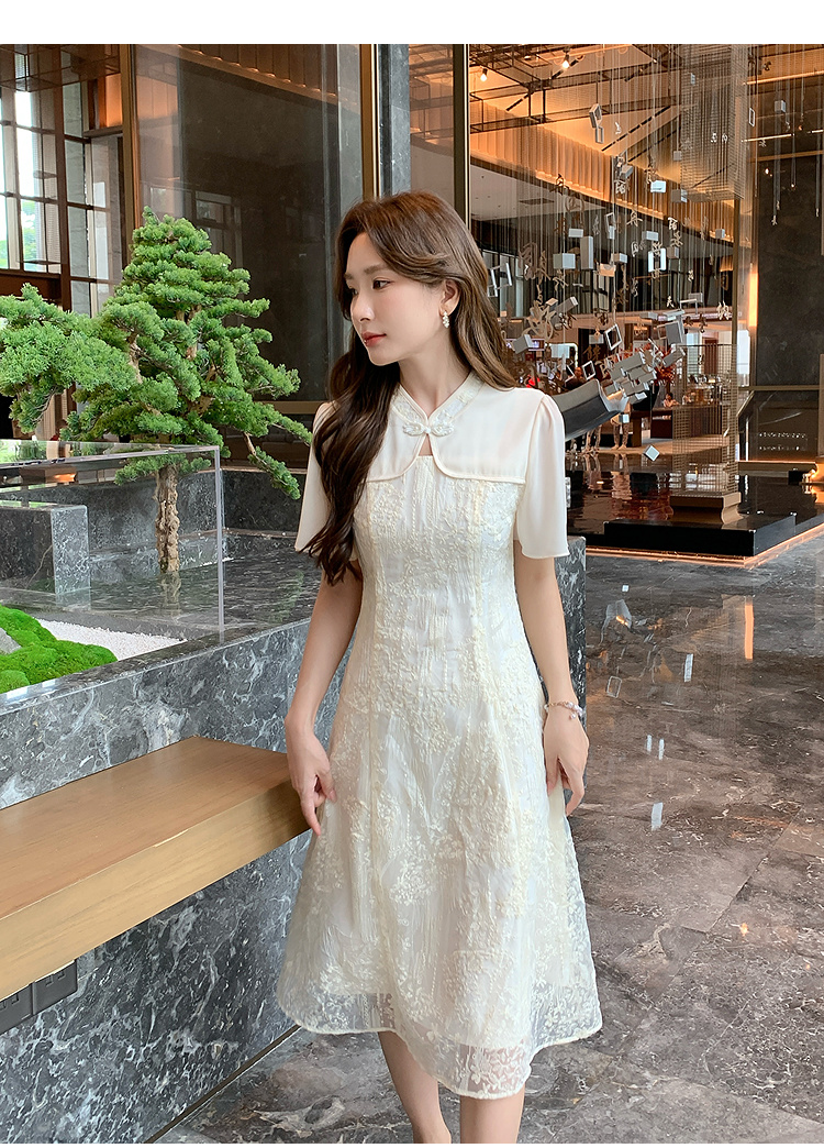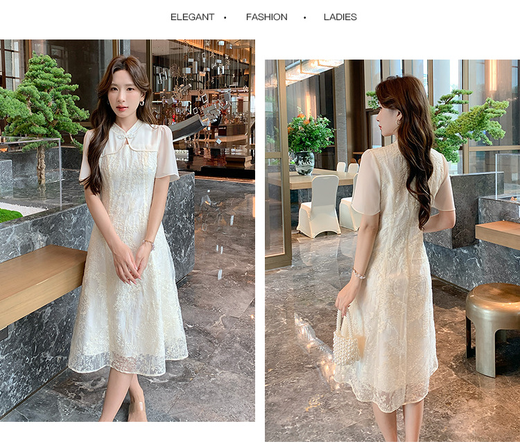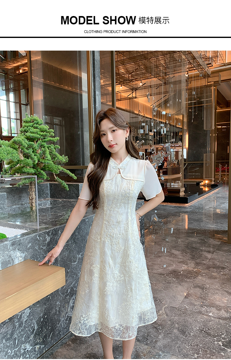 奢姿大码女装2025夏季改良旗袍拼接时尚连衣裙胖妹妹气质立领裙子9952890404