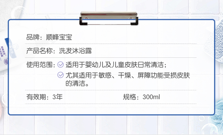 顺峰宝宝儿童洗发沐浴露二合一新生婴幼儿清爽洗护温和修复