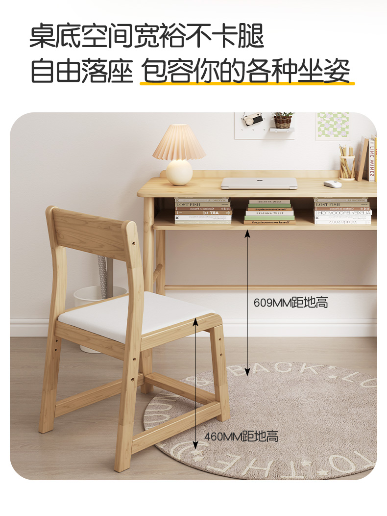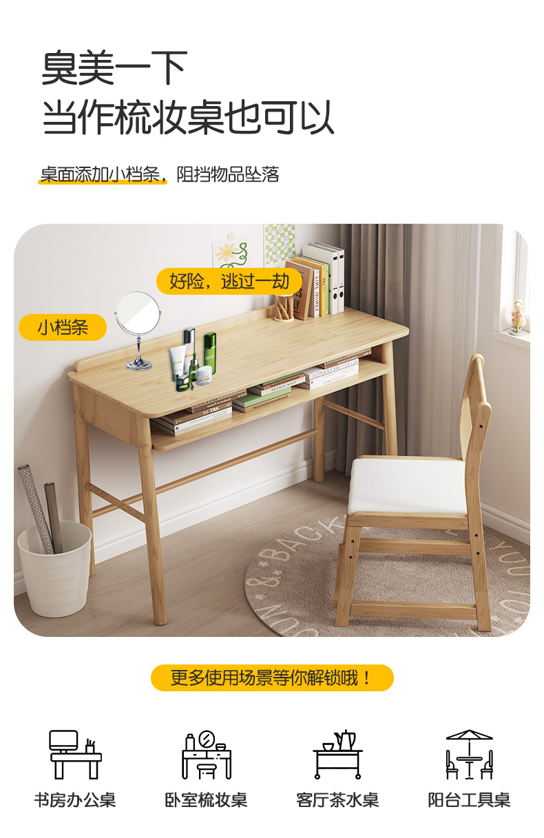 喜梦宝实木腿简约学习桌子电脑桌椅台式卧室写字桌糖果系列