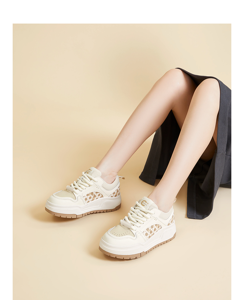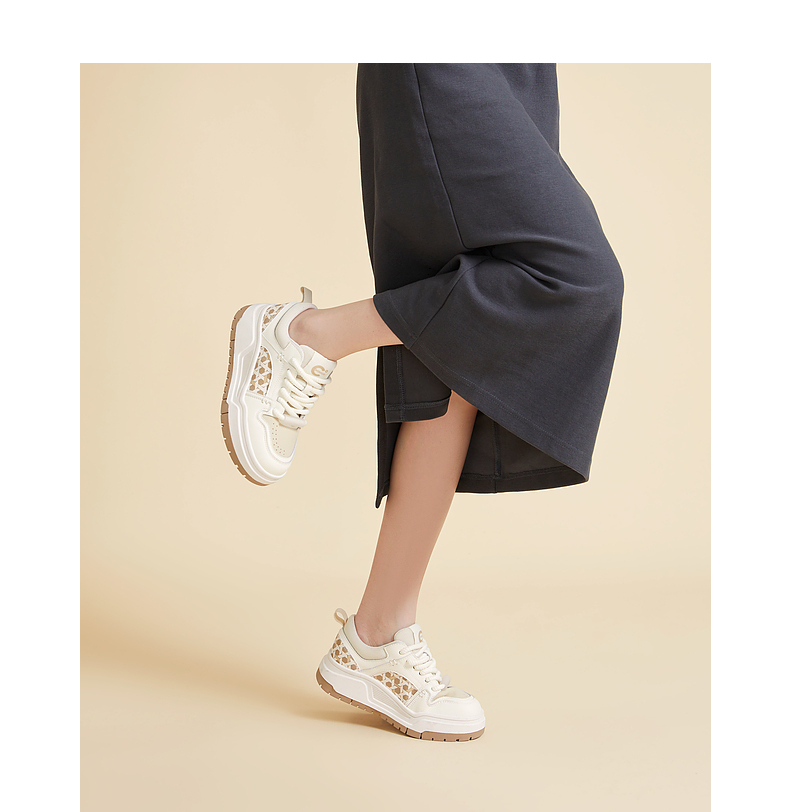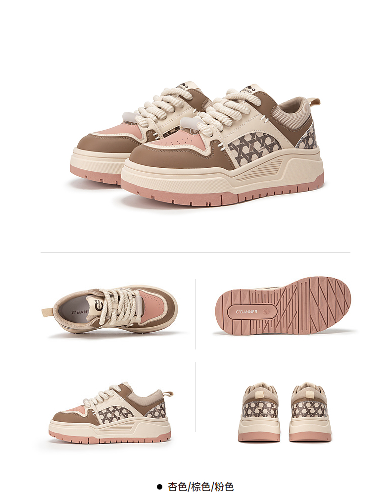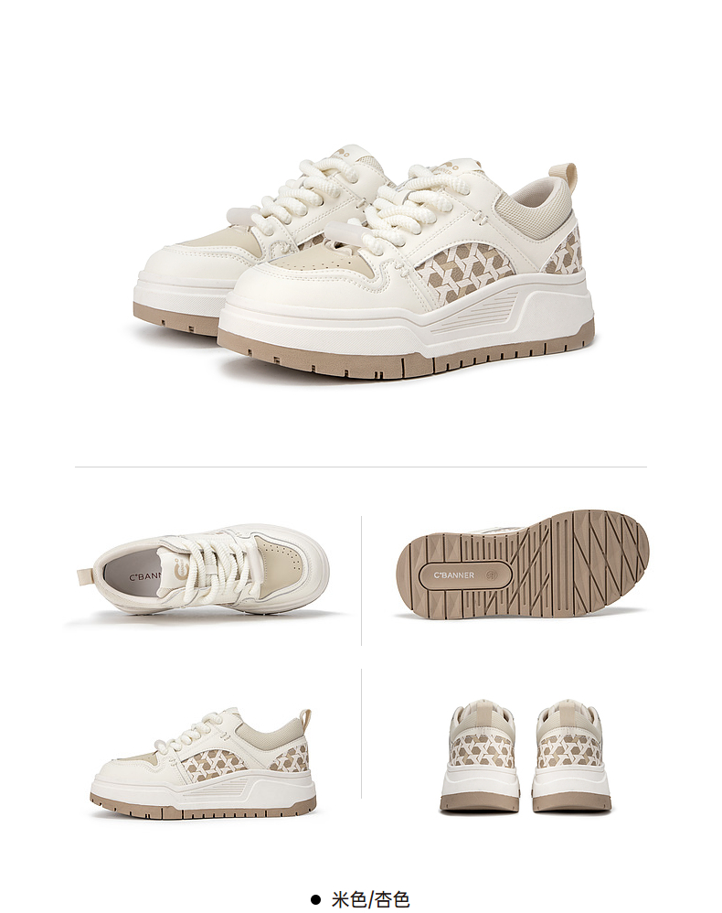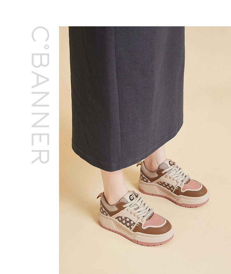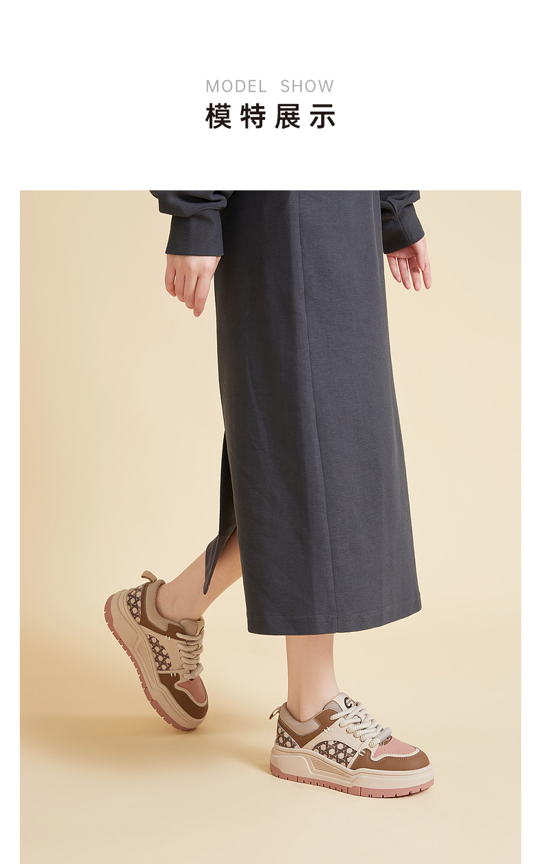 千百度时尚拼接厚底板鞋女春季增高运动休闲鞋透气百搭A24166039