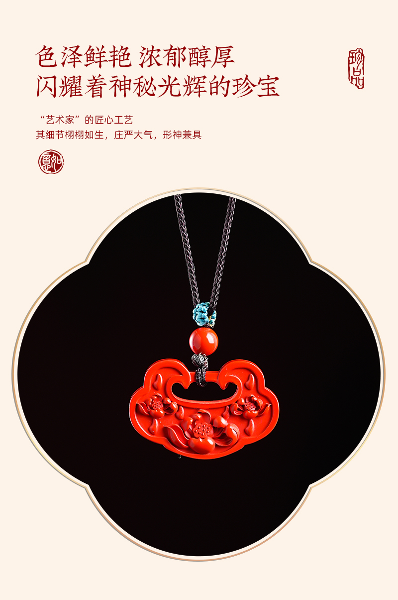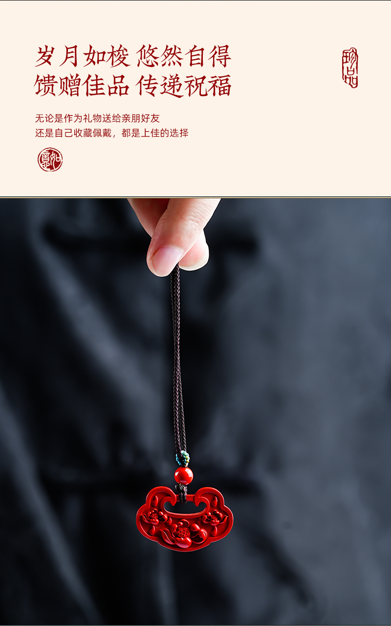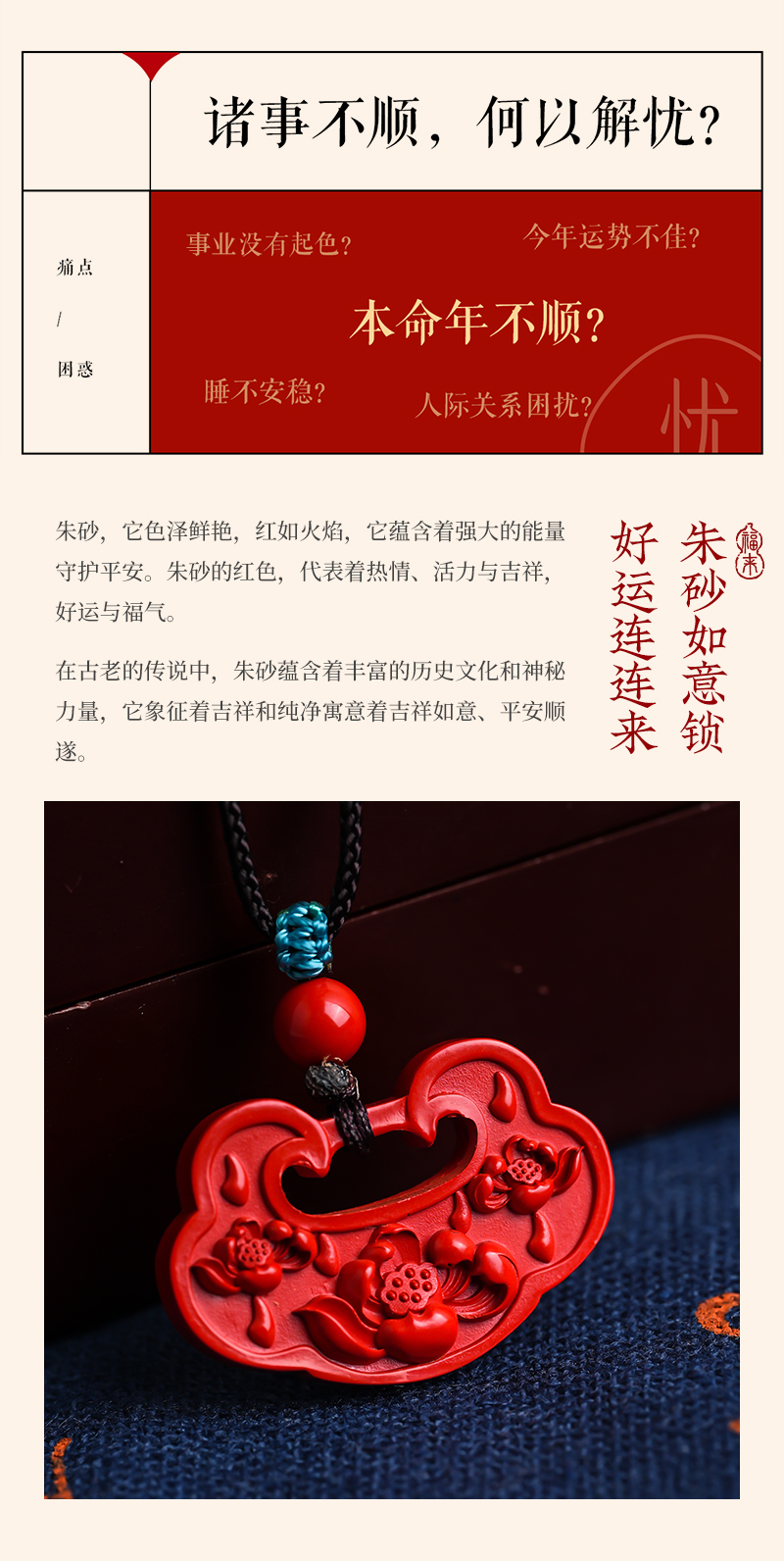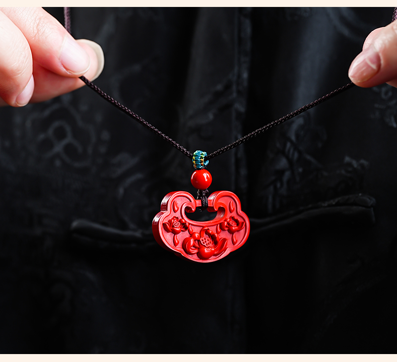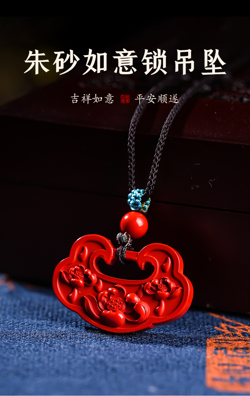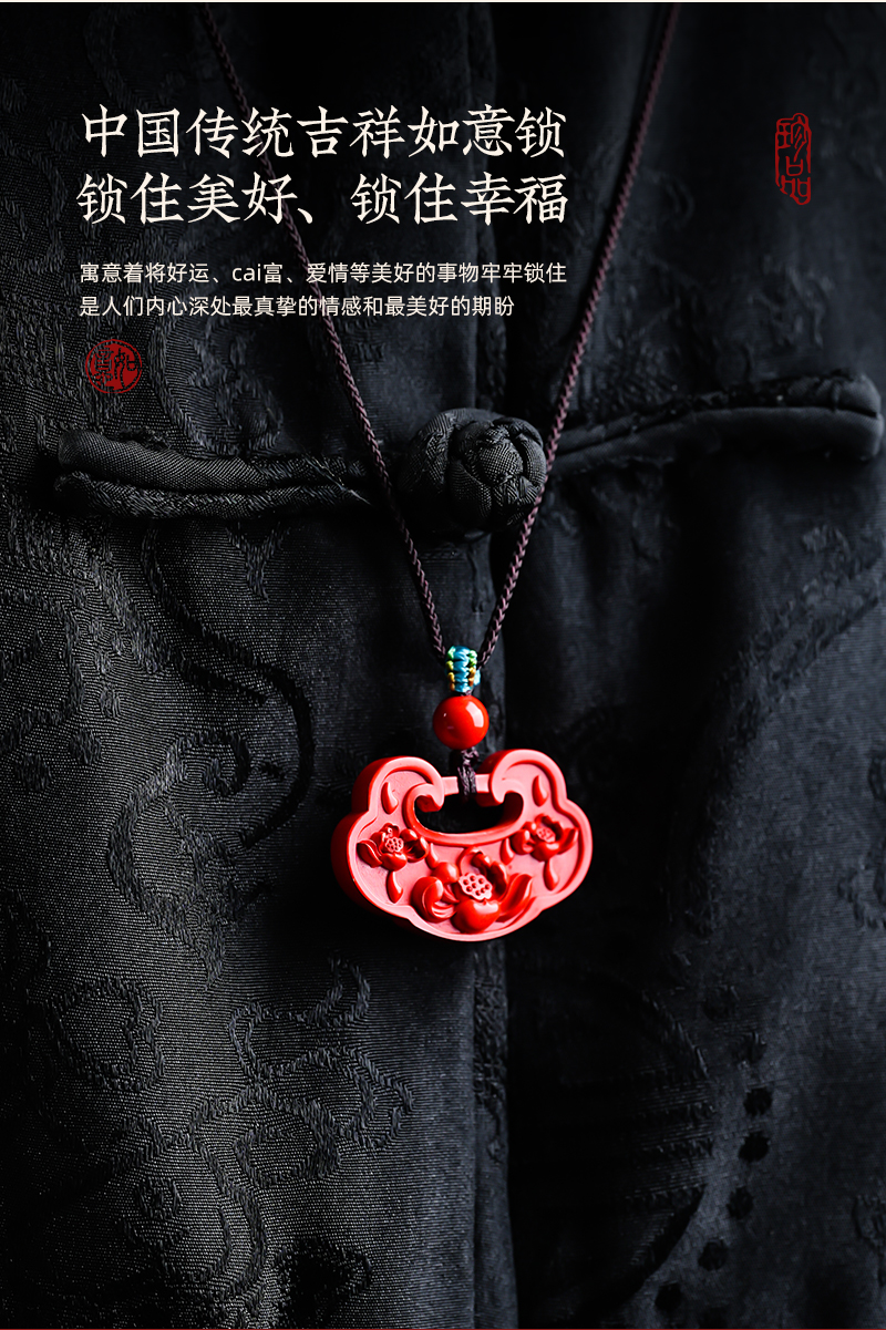 朱砂如意锁吊坠设计款男女情侣款挂绳项链