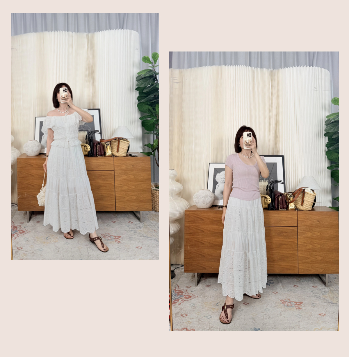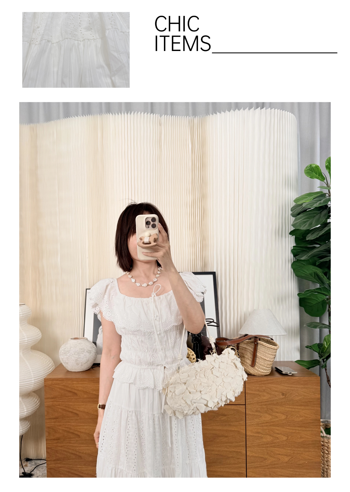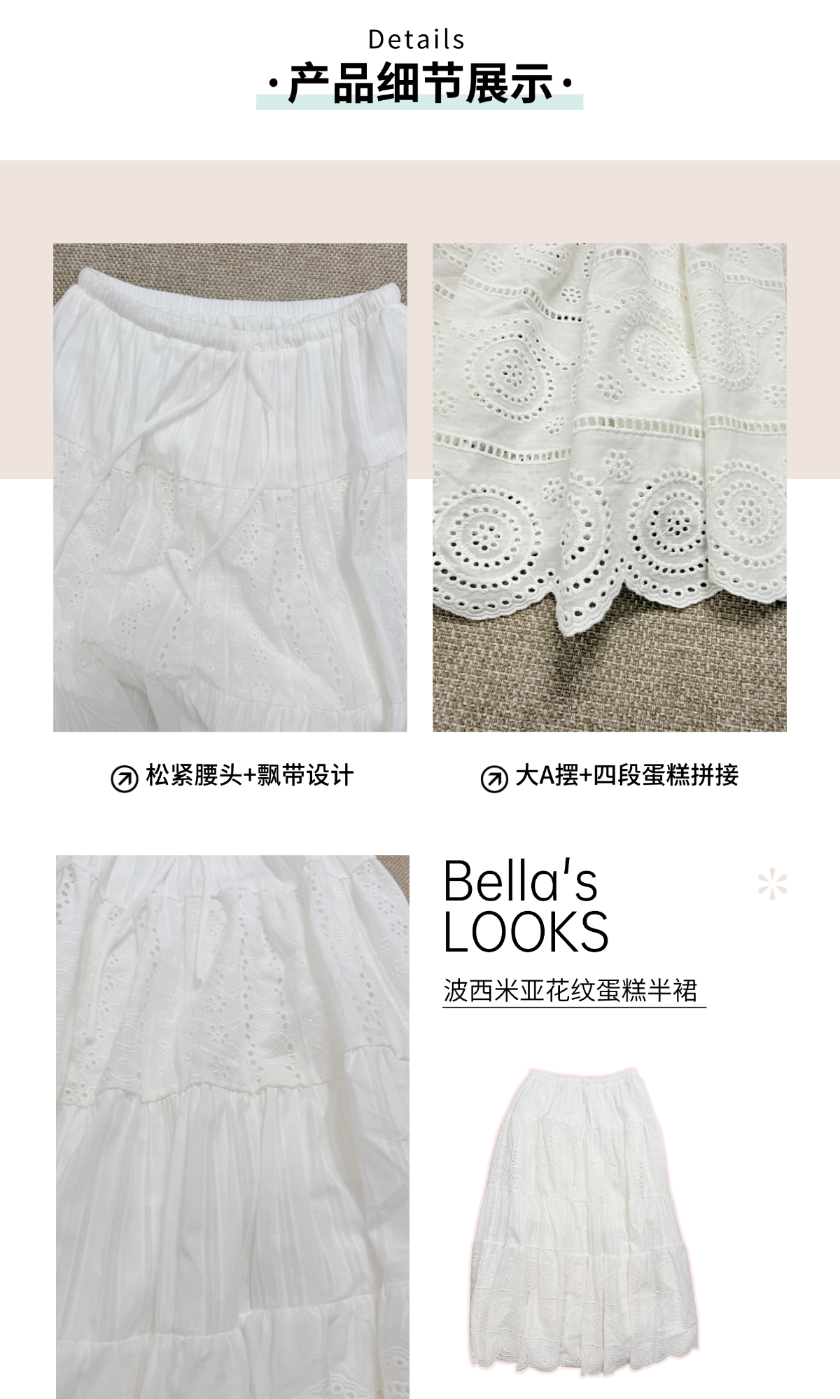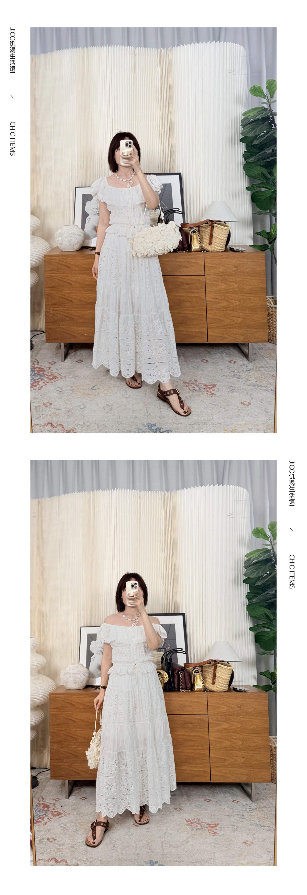 人间理想 波西米亚+南法一字肩小上衣 大A摆 蛋糕半裙 100棉重工镂空刺绣 一套搭配很仙