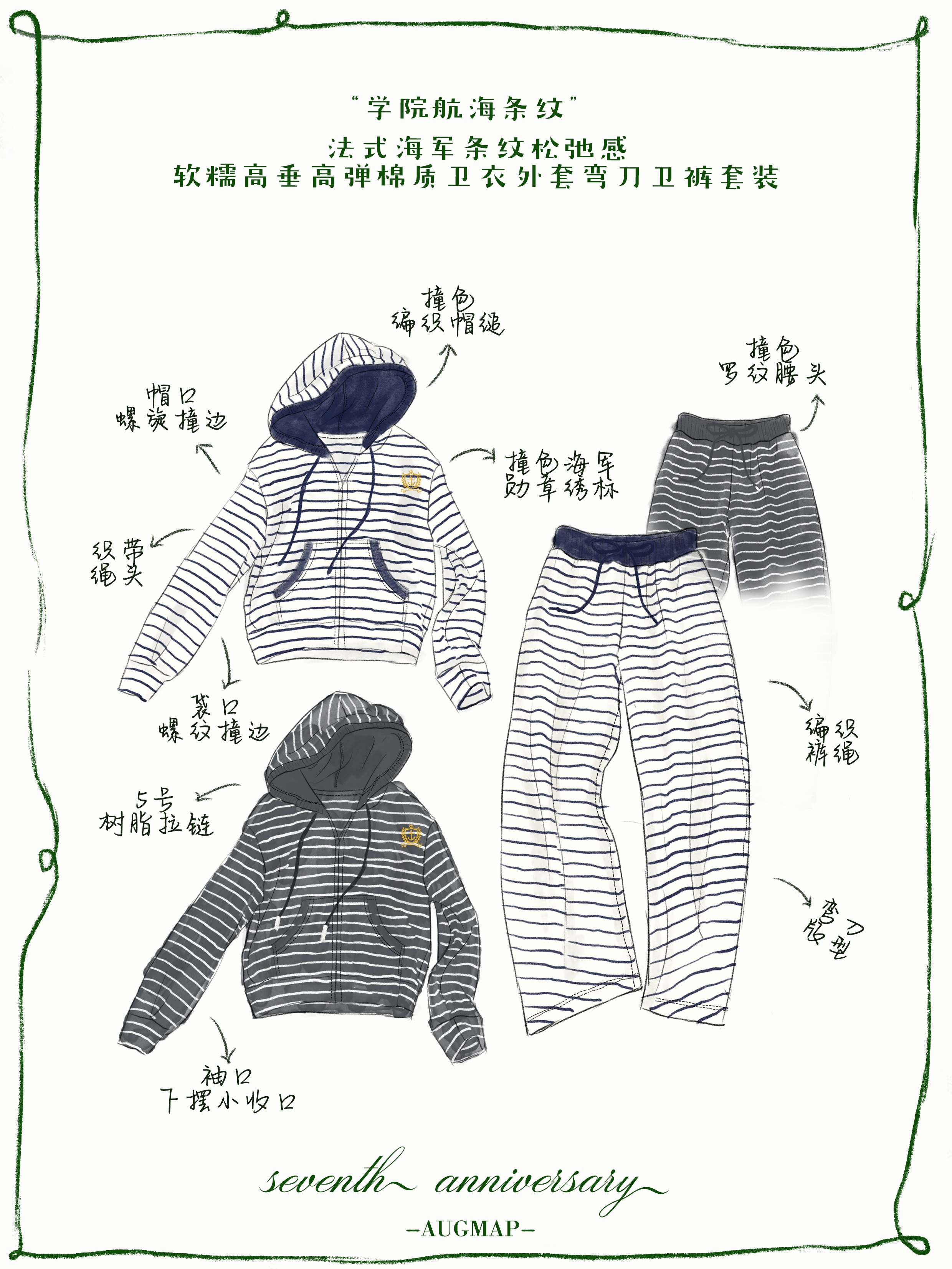 浮生八记/25C141/25C142/海军条纹卫衣卫裤套装