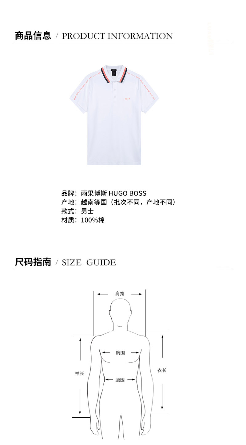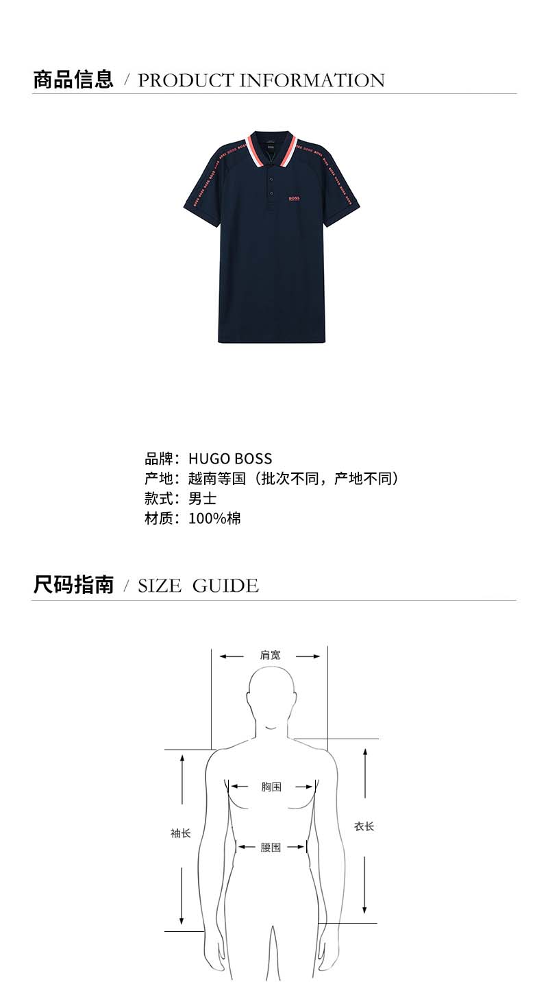 HUGO BOSS/雨果博斯 男士短POLO 男士棉质修身版短袖POLO衫 50452874