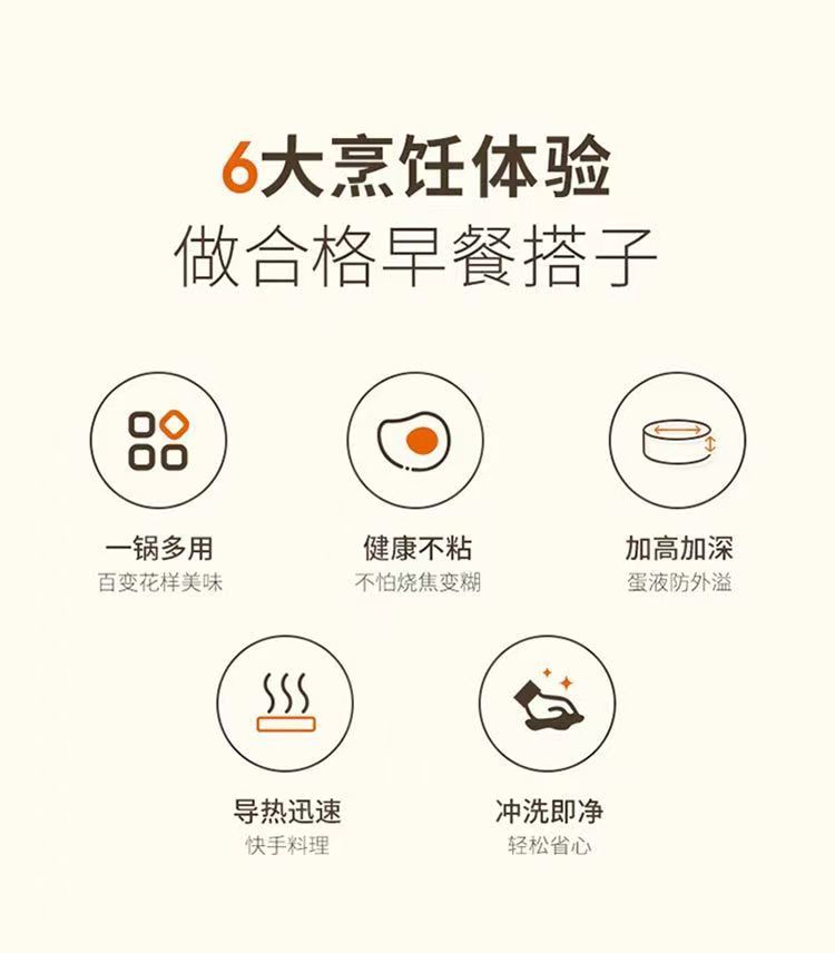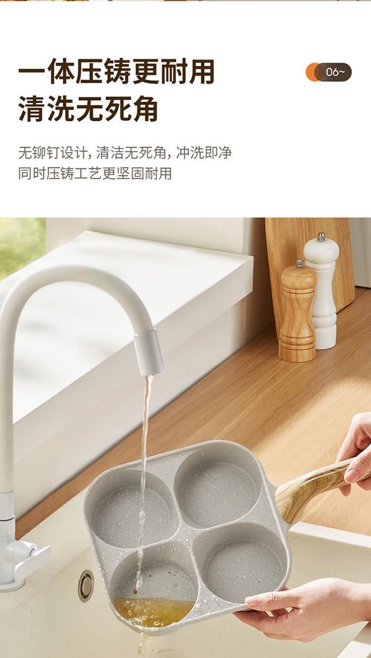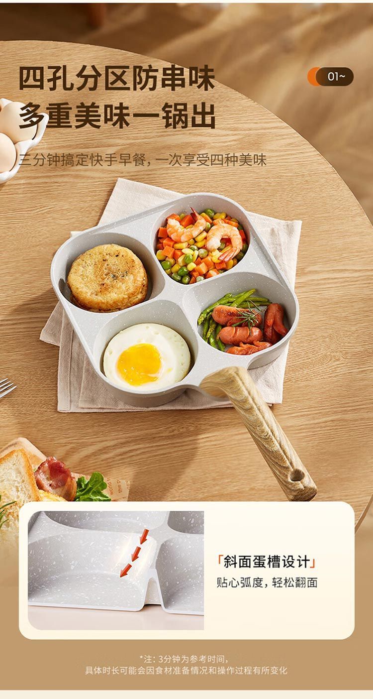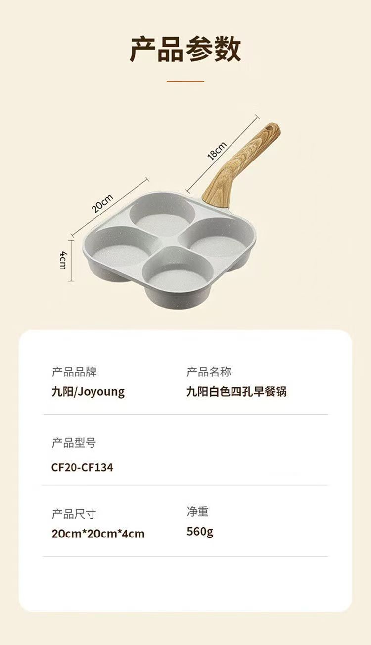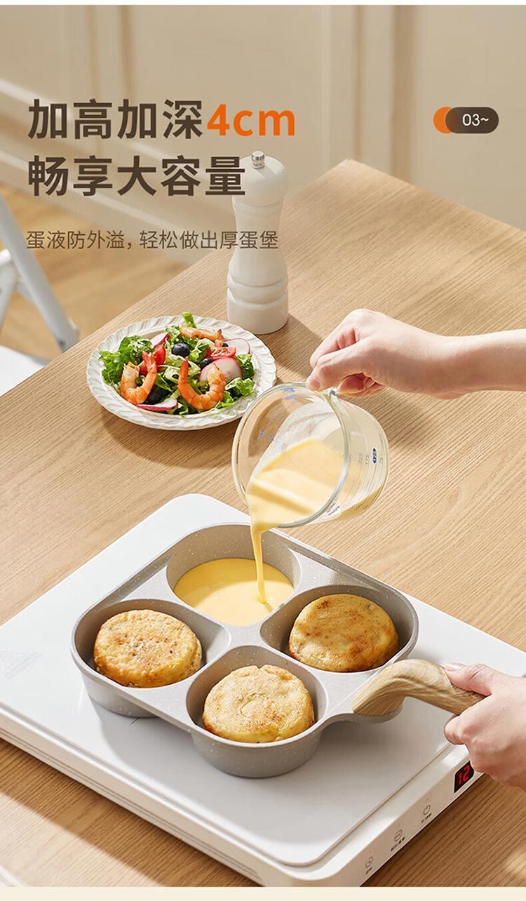 九阳 圆形四孔麦饭石色不粘蛋堡锅磁炉通用款煎蛋早餐三合一家用