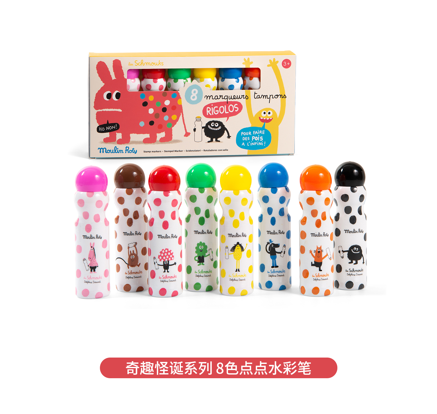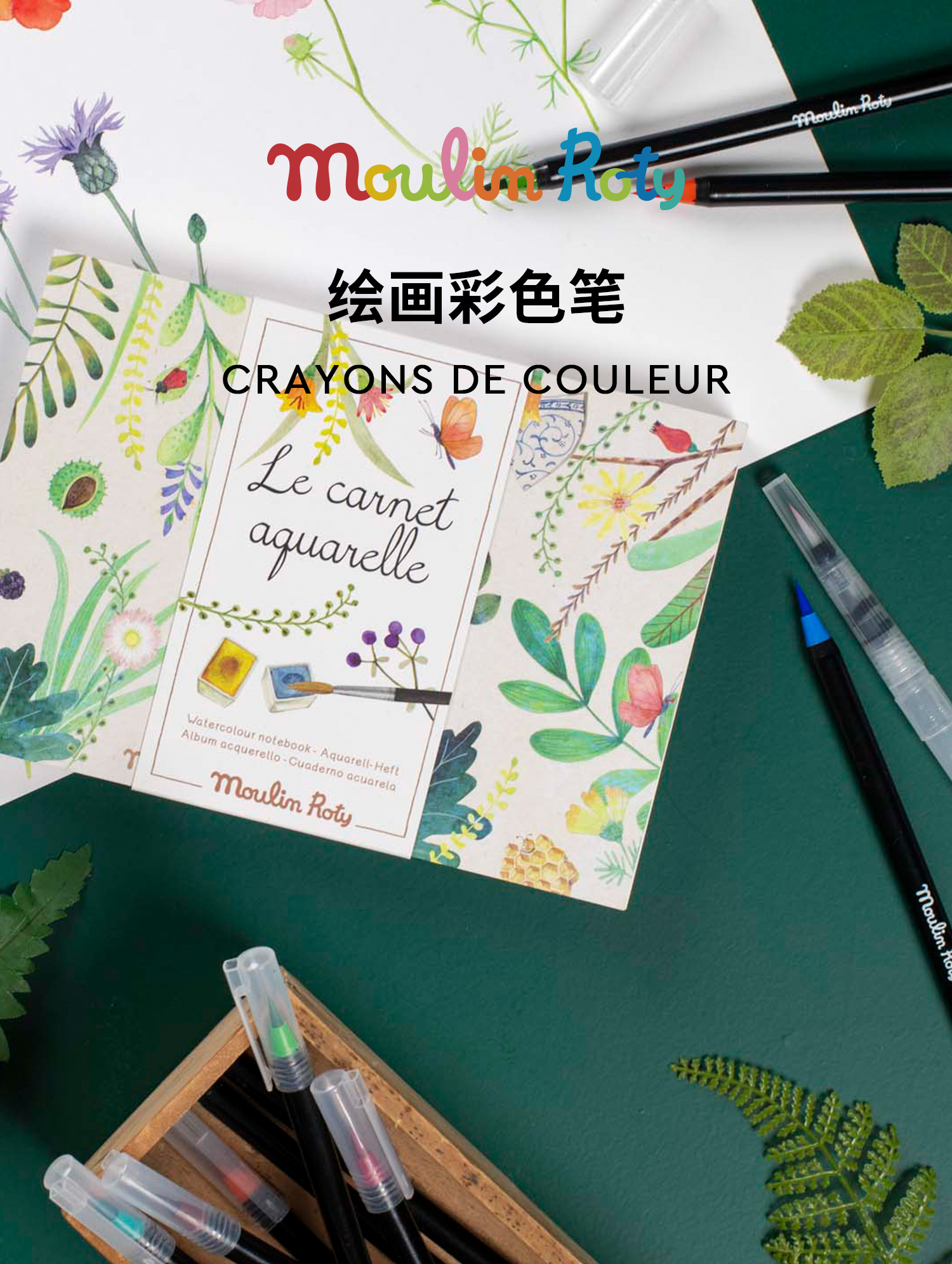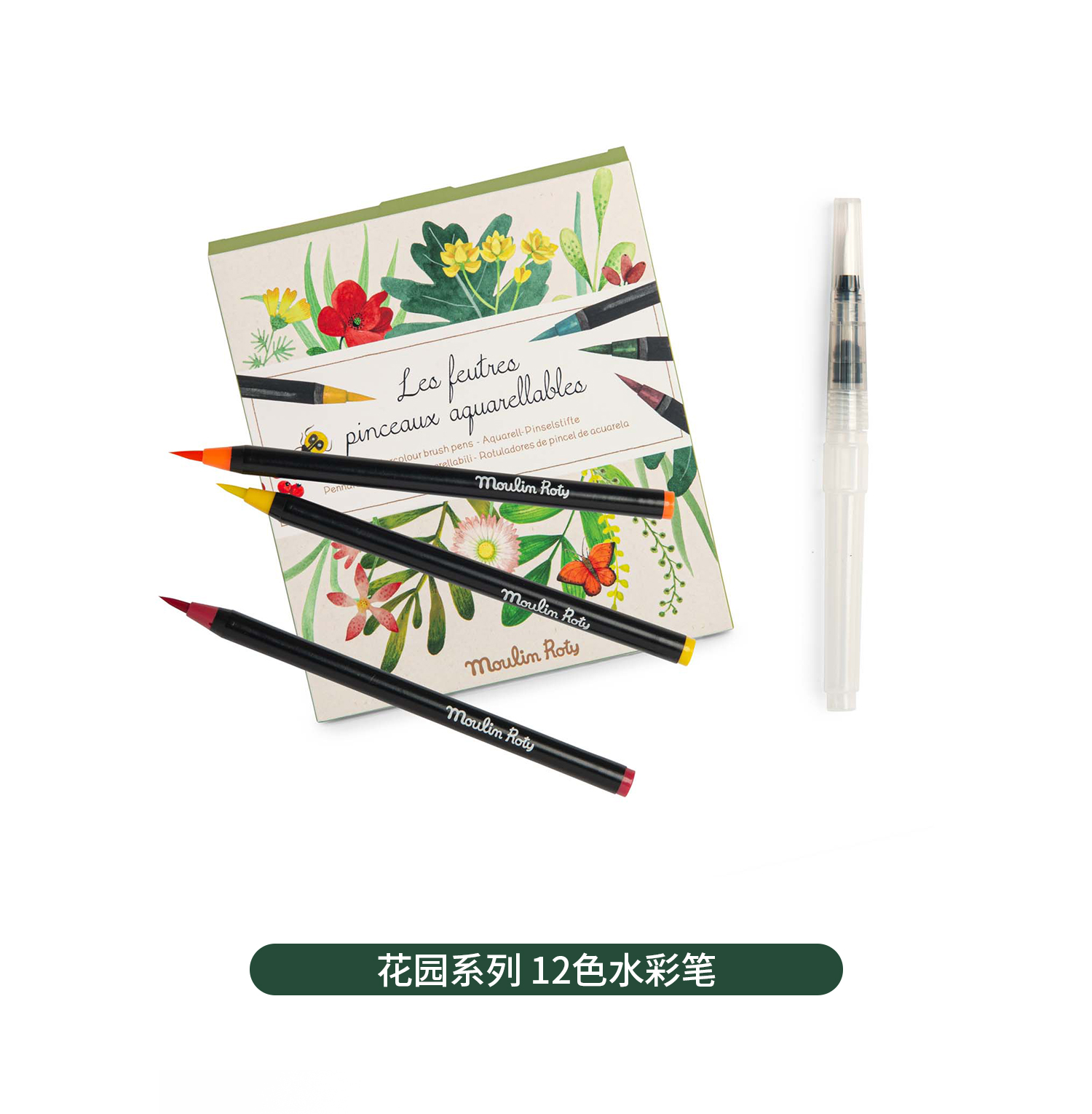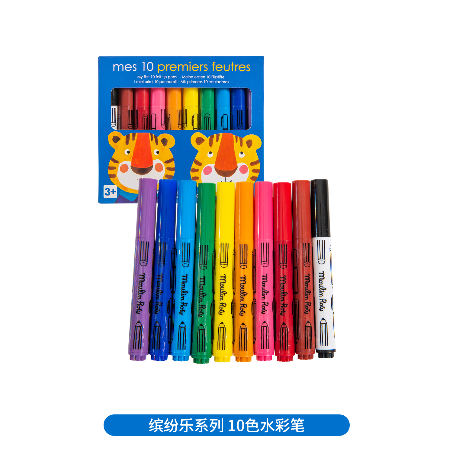 Moulin Roty 10色水彩笔 适合3岁以上 高质量美术工具 不同用法的笔头 缤纷乐系列 法国品牌-661612
