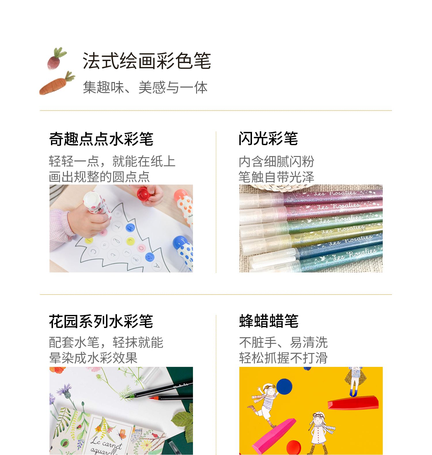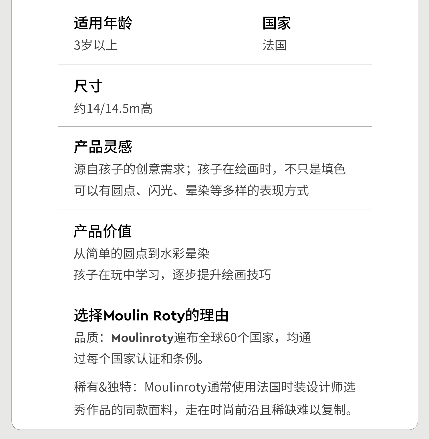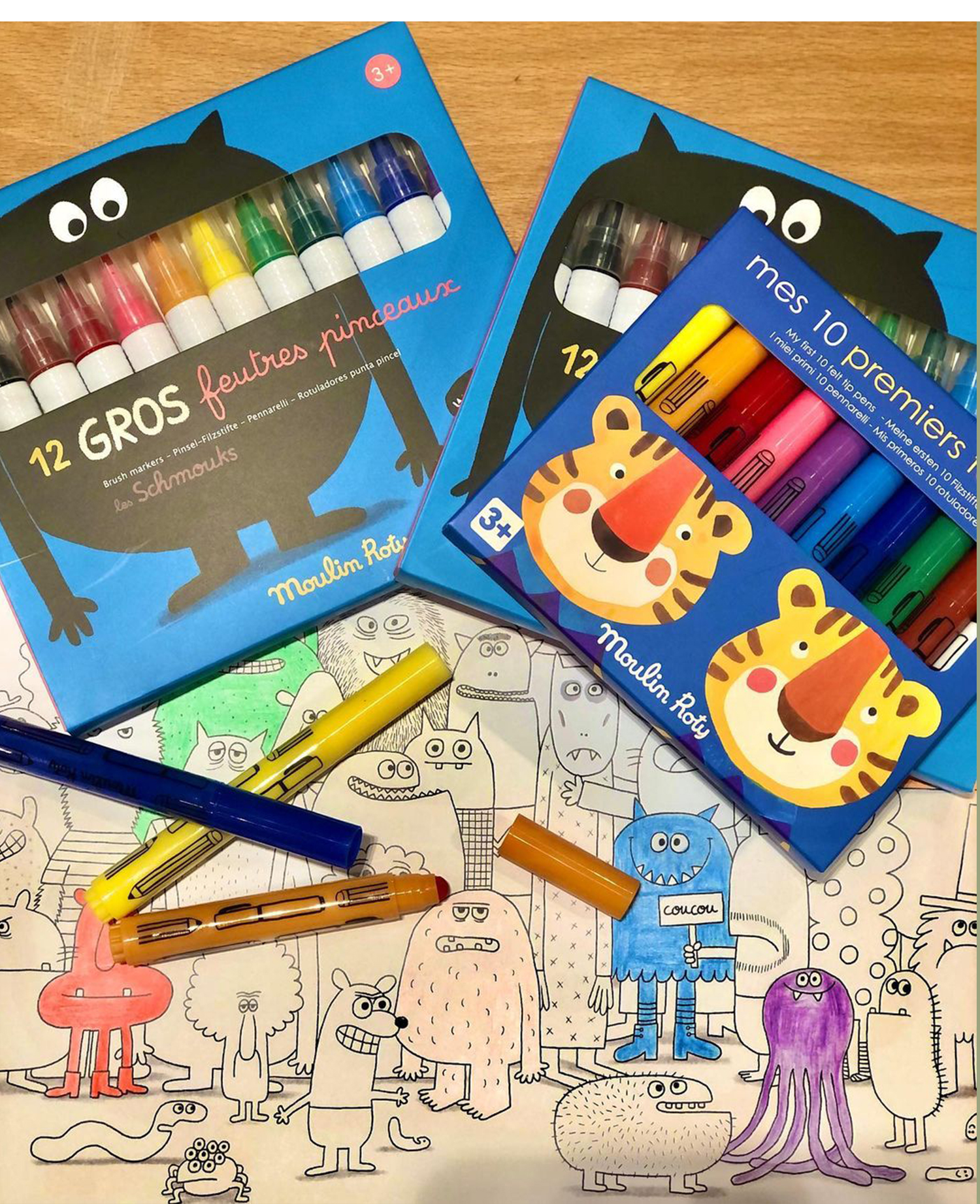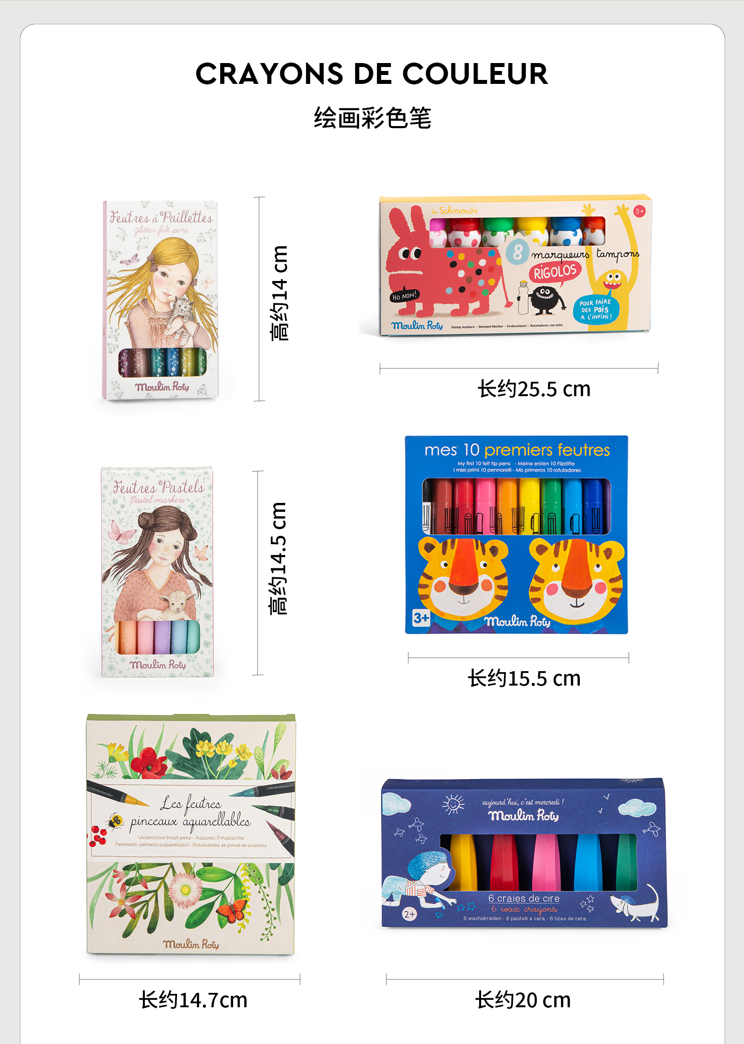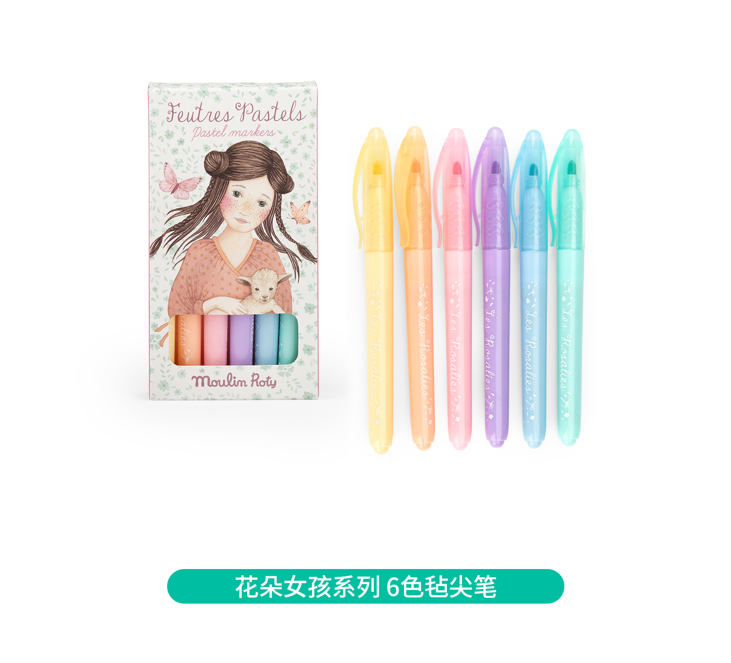 Moulin Roty 10色水彩笔 适合3岁以上 高质量美术工具 不同用法的笔头 缤纷乐系列 法国品牌-661612