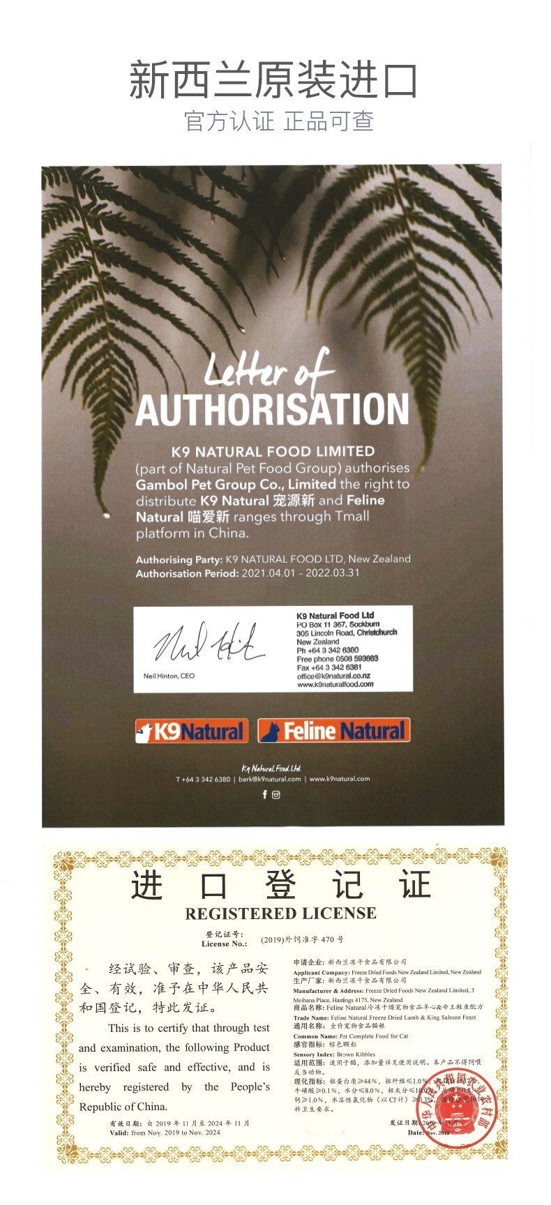 FelineNatural新西兰进口K9冻干猫粮生骨肉猫咪主食成幼猫粮