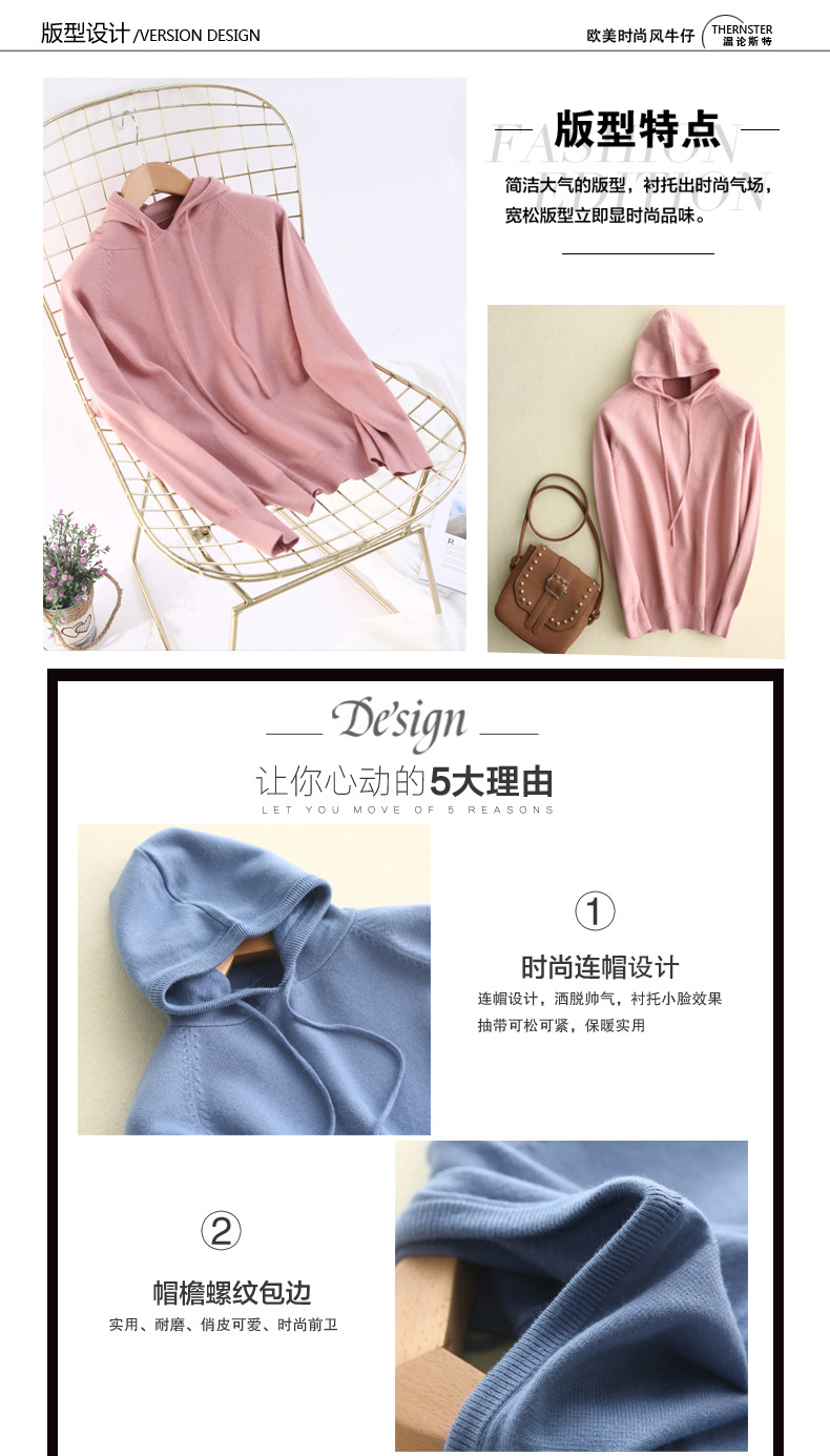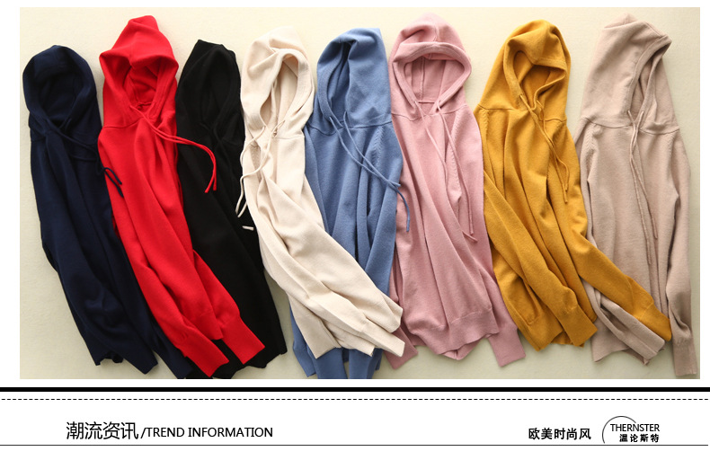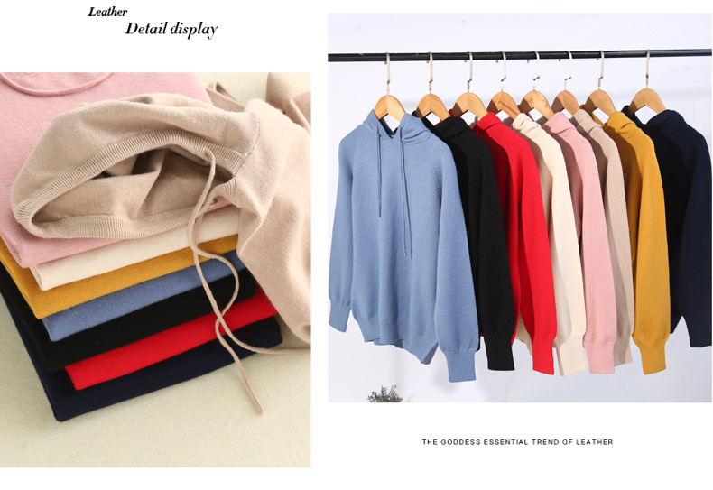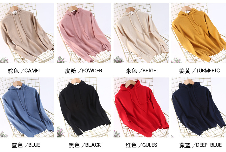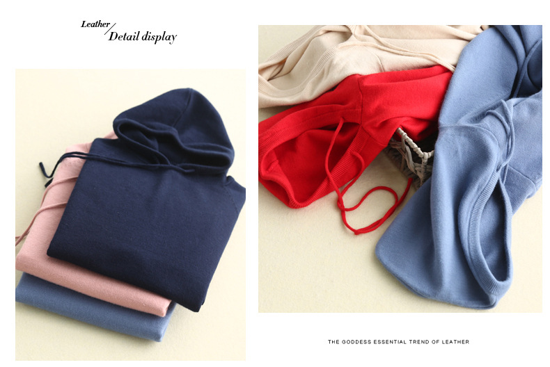 【百搭高弹力连帽针织衫】 卫衣款式多色连帽针织衫 减龄神奇 不挑身材 手感柔软 舒适亲肤 颜色多选