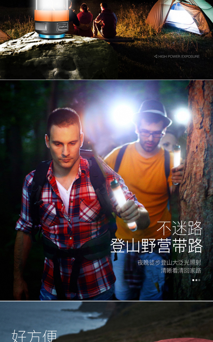微笑鲨 露营灯手电筒LED帐篷灯停电应急可充电宝超亮驱蚊野营多功能