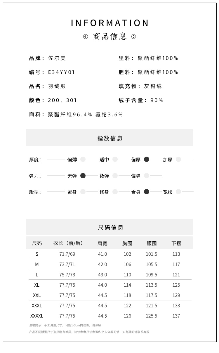 佐尔美冬季新款 气质百搭连帽保暖羽绒服E34YY01