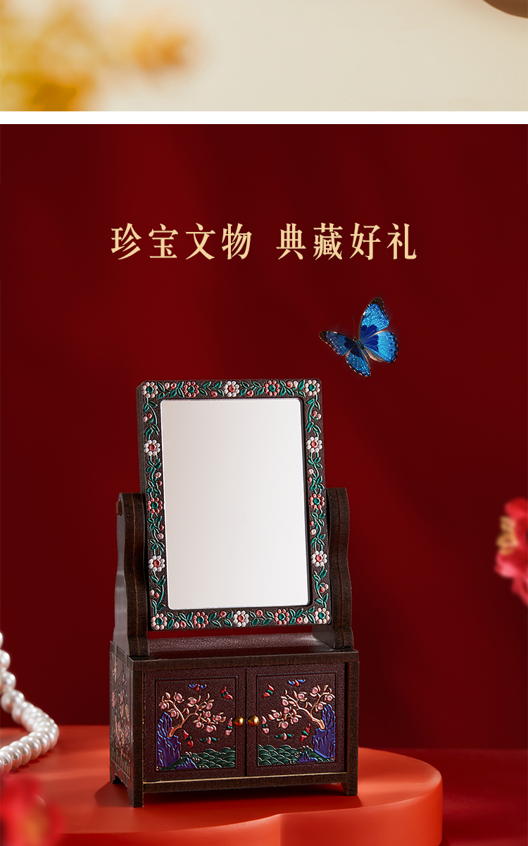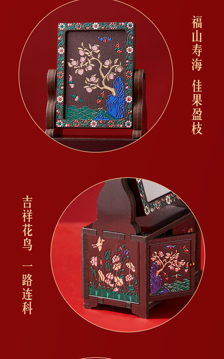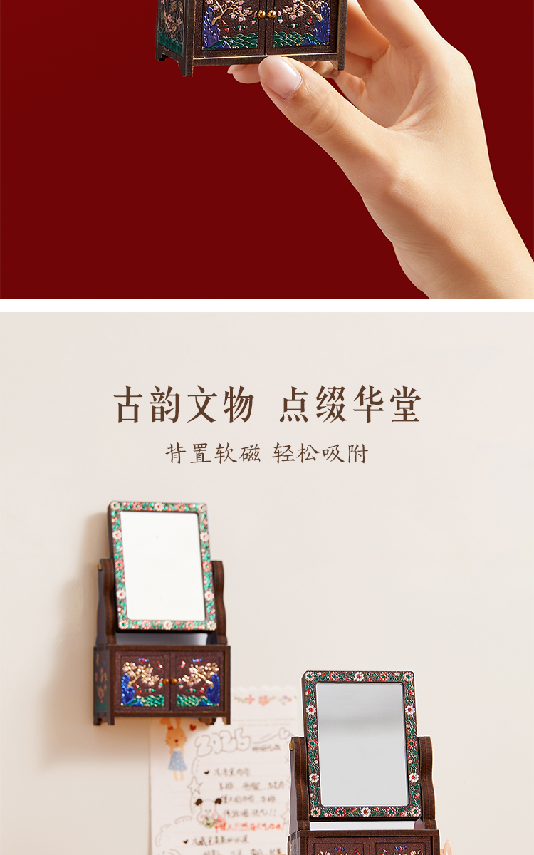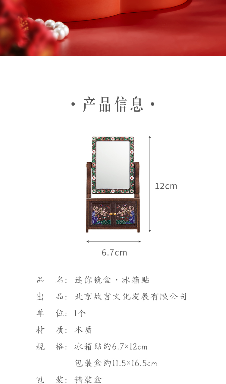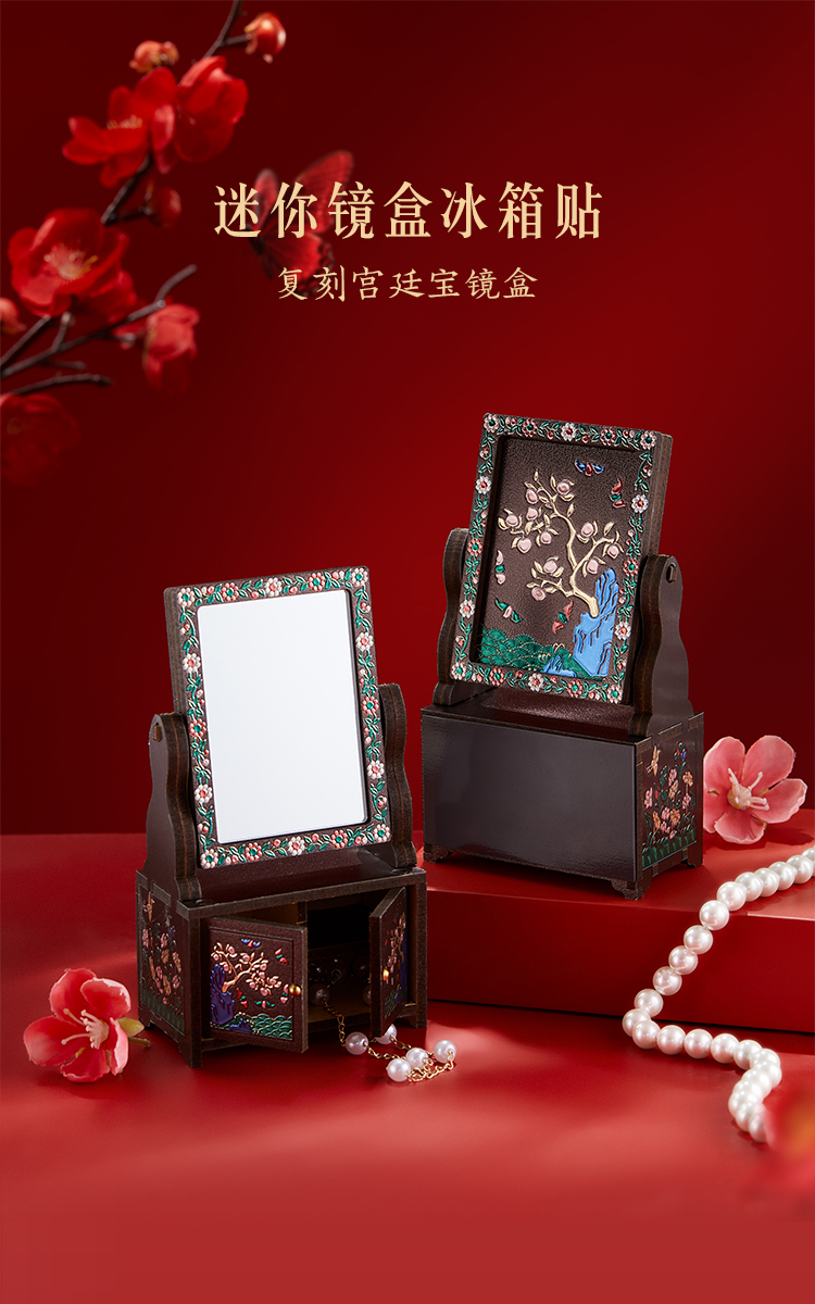 【故宫冰箱贴】迷你镜盒木质冰箱贴小镜子妆匣摆件博物馆文创伴手礼