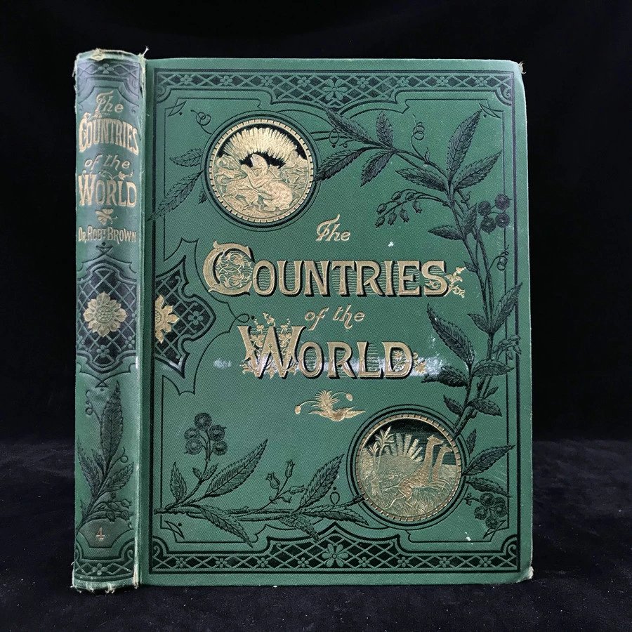 约19世纪后期 罗伯特·布朗宁《世界各国 》约百幅版画插图 漆布精装16开