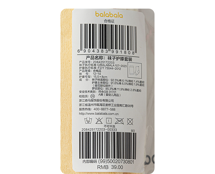 巴拉巴拉balaOne宝宝袜子冬保暖袜婴幼儿短袜防着凉提花护膝套装