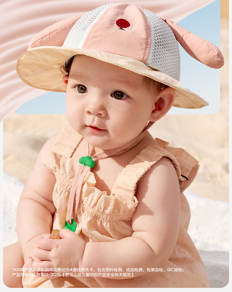KK树宝宝防晒帽儿童防紫外线遮阳帽子男童女孩春夏渔夫帽大帽檐小奶萌动物帽