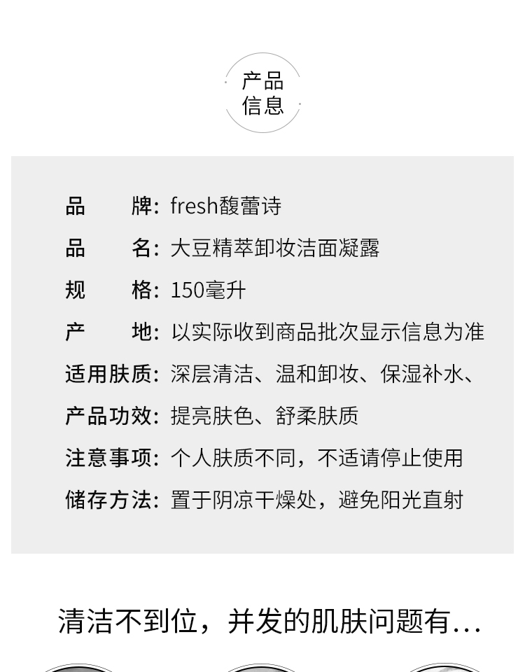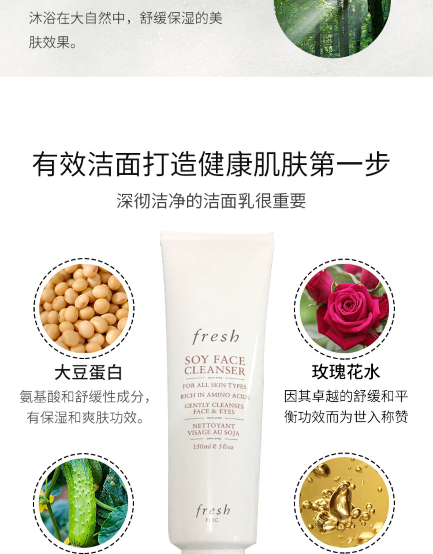 【YZ】Fresh馥蕾诗大豆啫喱洗面奶150ml温和保湿卸妆凝露洁面乳深层清洁