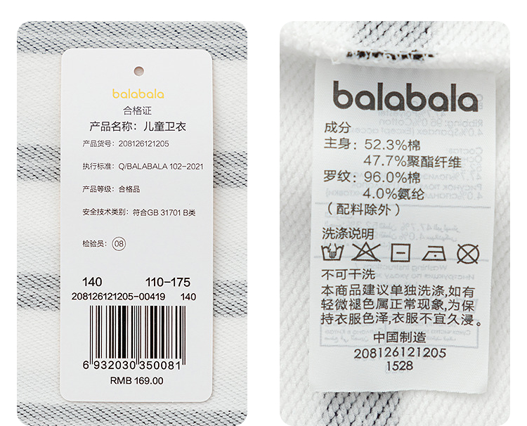 【balaOne】巴拉巴拉儿童卫衣长袖男女童2026新款春装条纹上衣潮