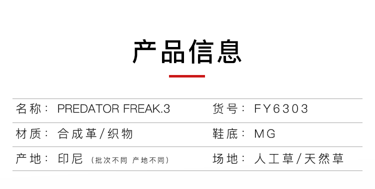 ADIDAS/阿迪达斯 PREDATOR FREAK .3 MG短钉猎鹰中端足球鞋FY6303
