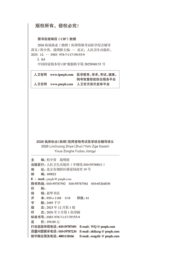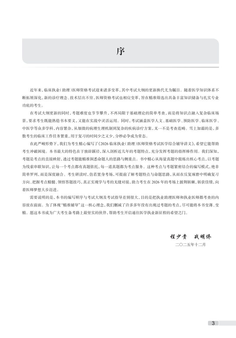 2026临床执业(助理)医师资格考试医学综合辅导讲义 程少贵 战明侨 医师资格考试用书 2026执业医师9787117391559人民卫生出版社
