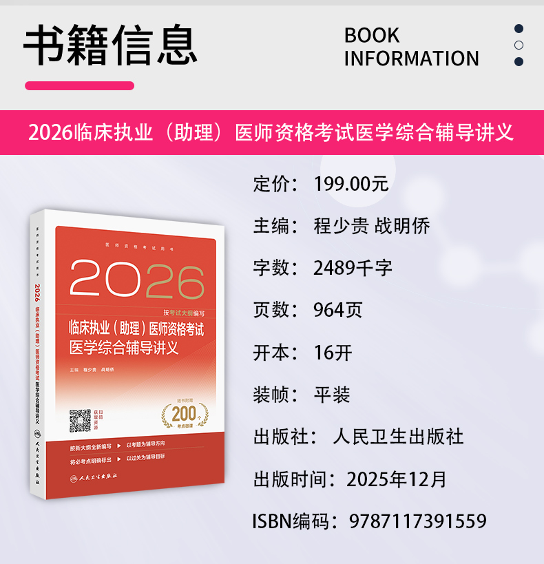 书名:2026临床执业(助理)医师资格考试医学综合辅导讲义