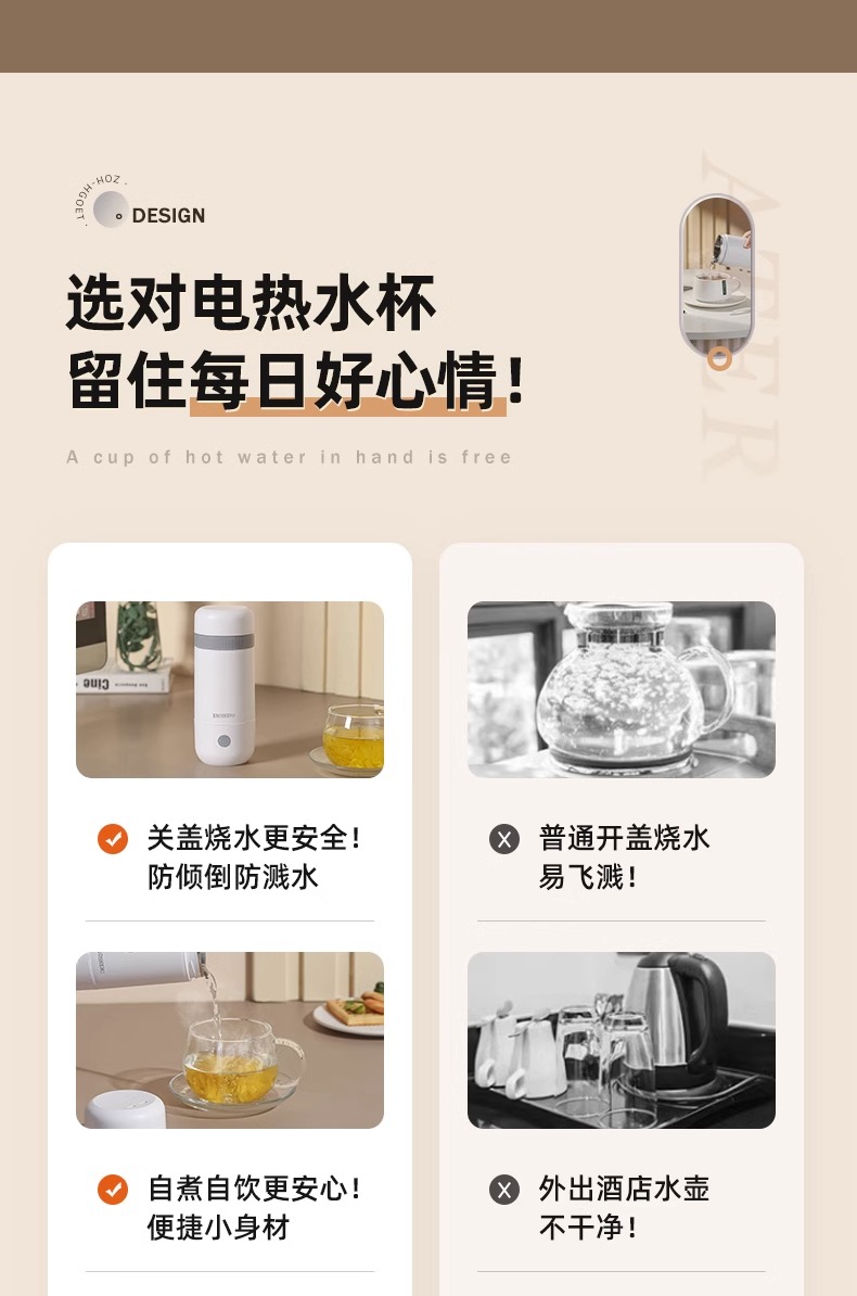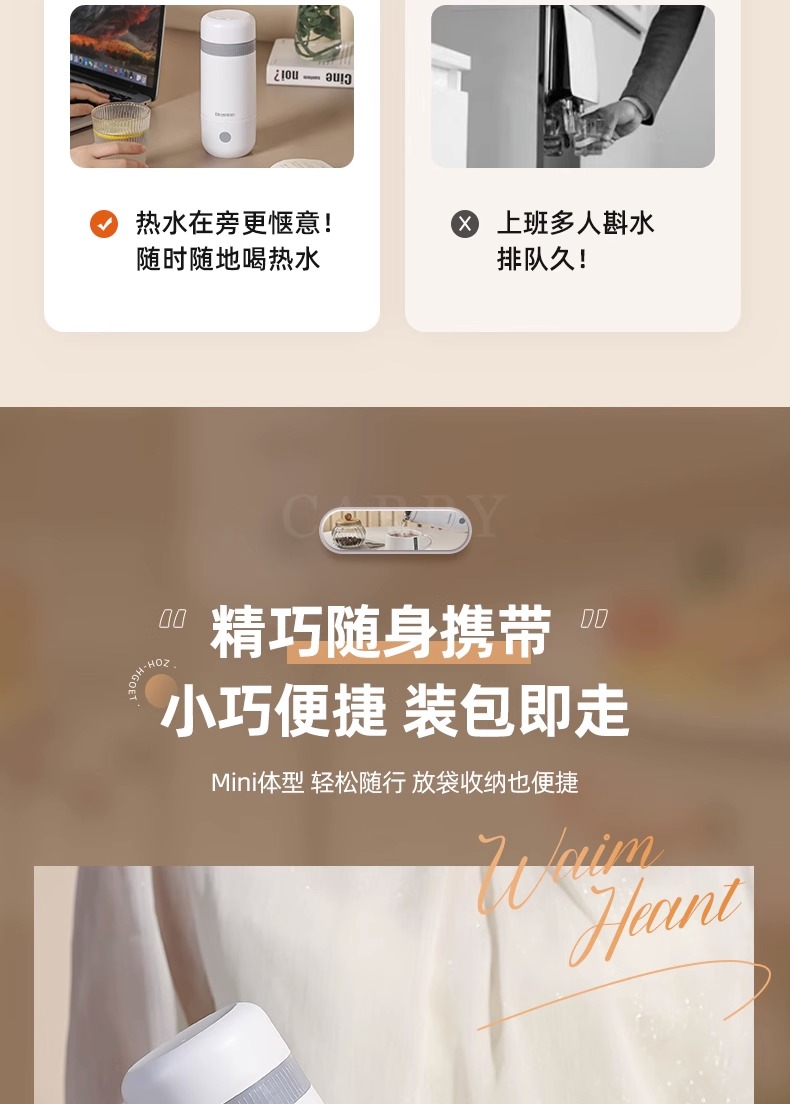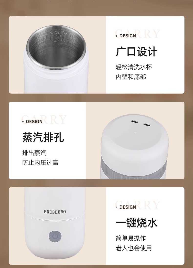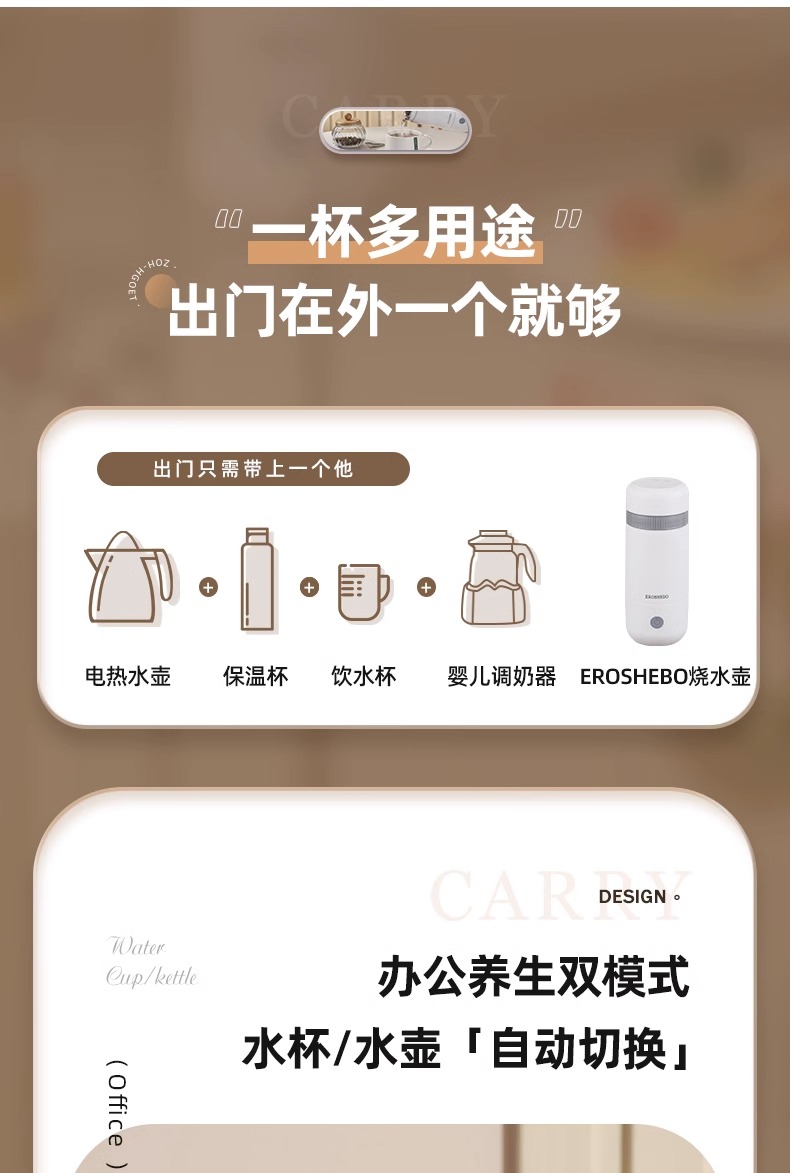 艾罗赫柏电热水壶烧水壶小型迷你旅行便携式家用加热水杯水壶