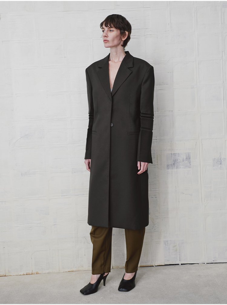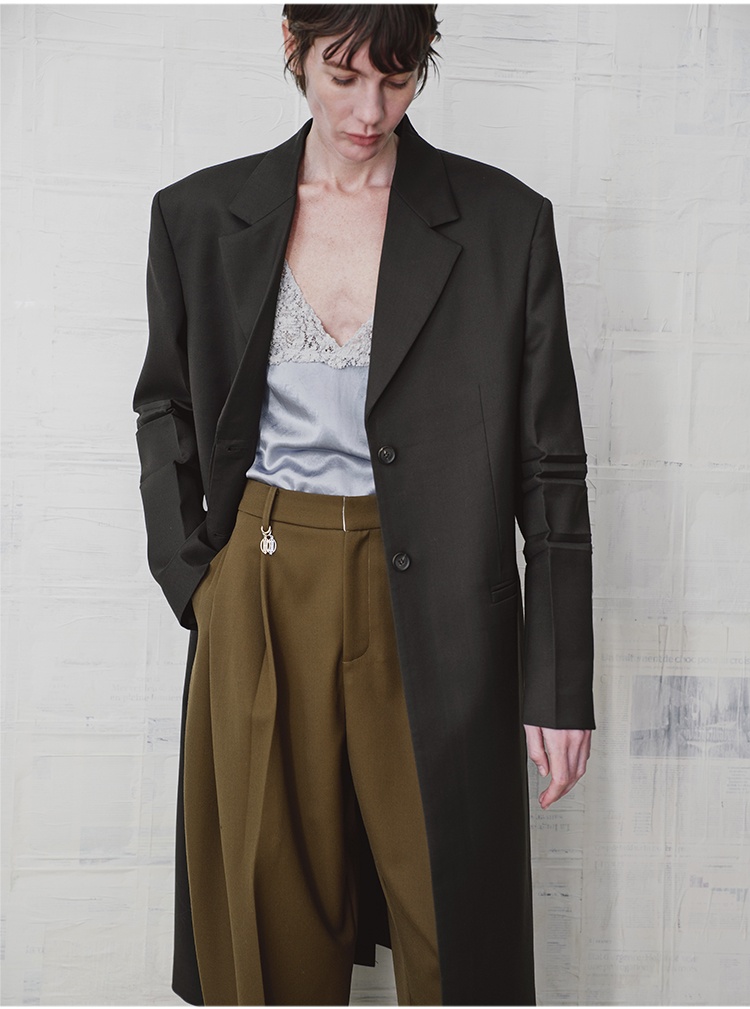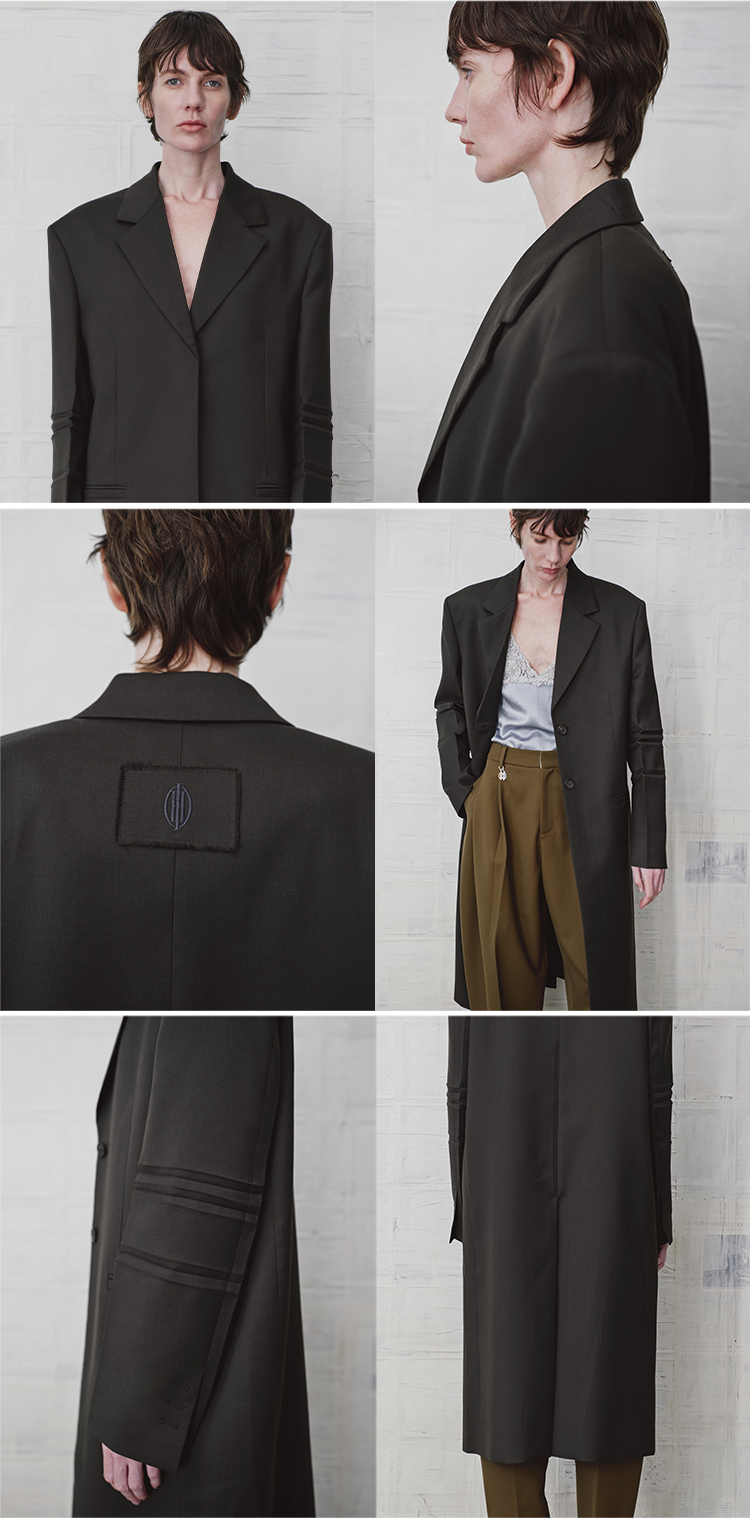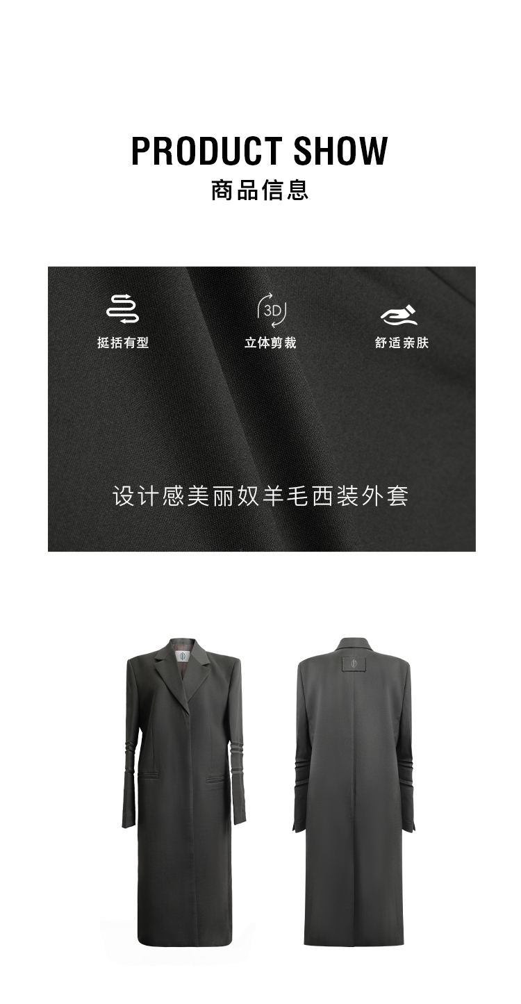 HIDEMI 设计感美丽奴羊毛翻驳领长款西装外套