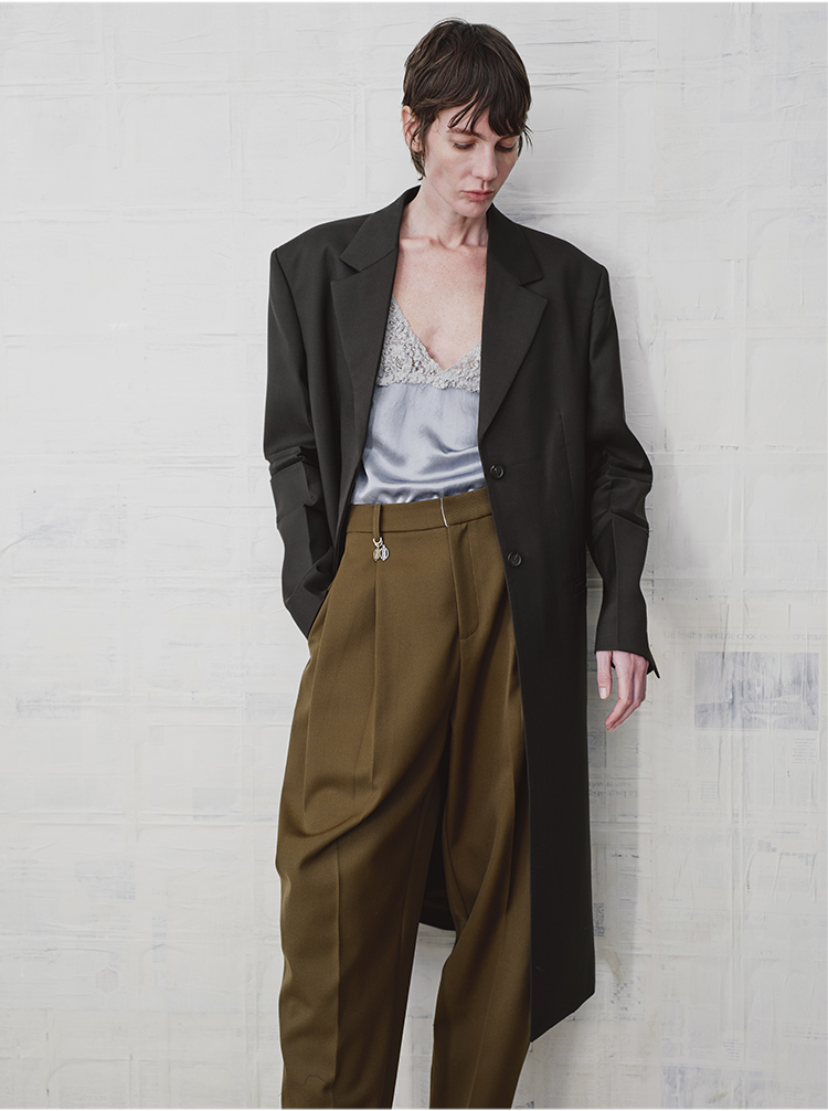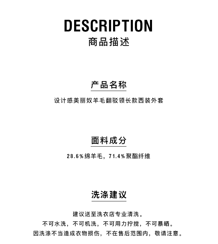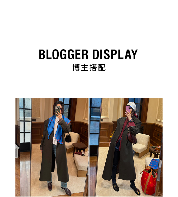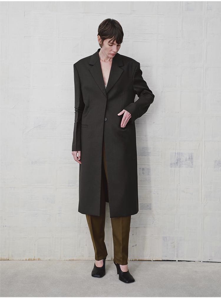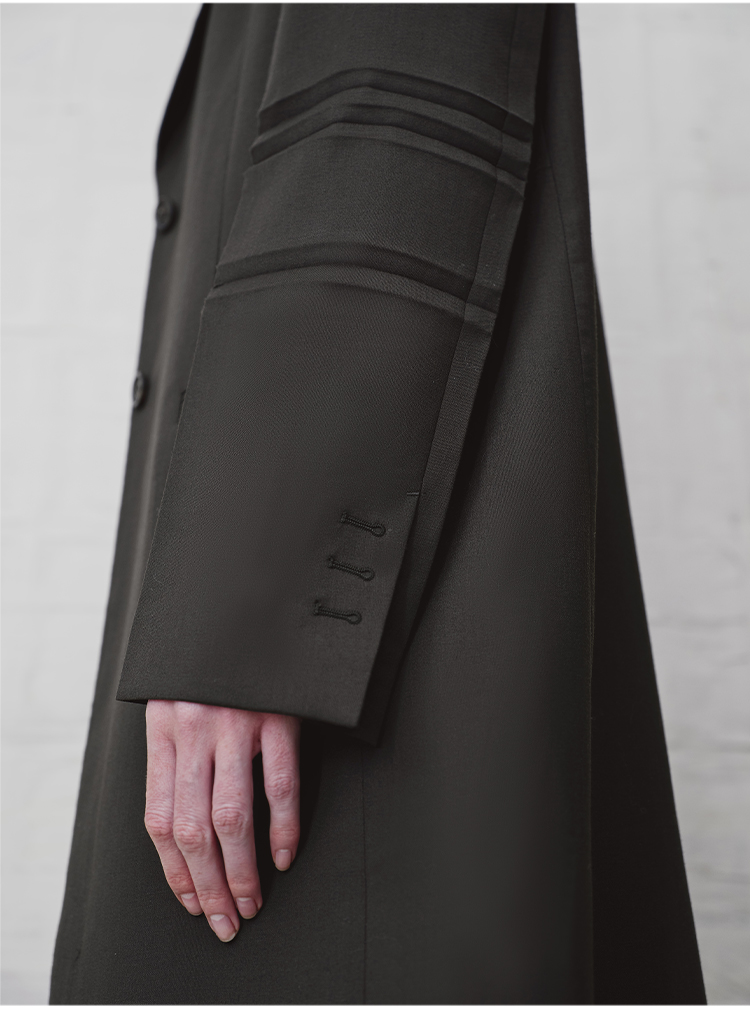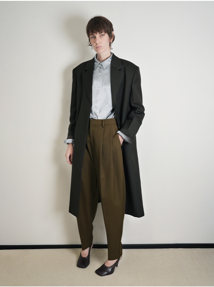 HIDEMI 设计感美丽奴羊毛翻驳领长款西装外套