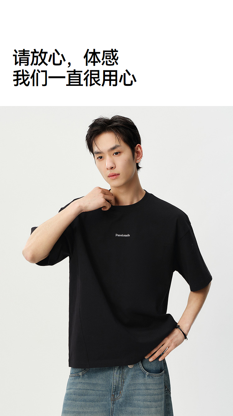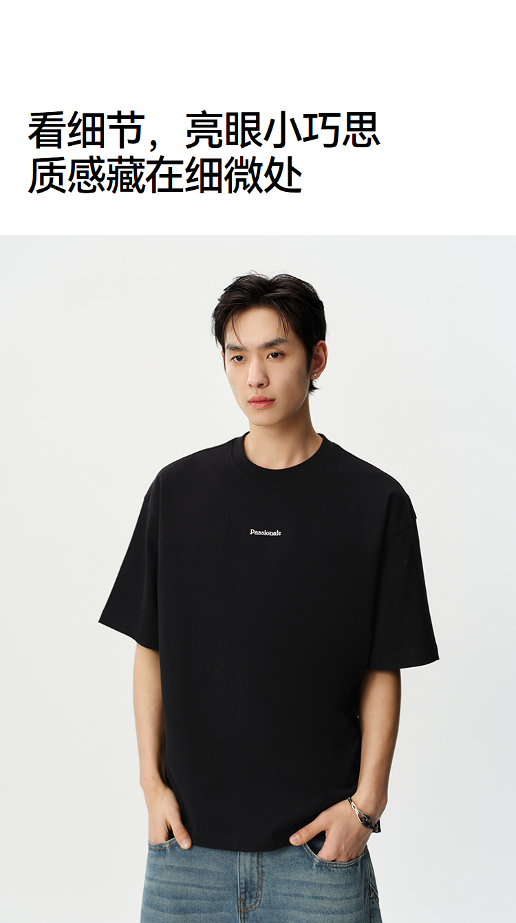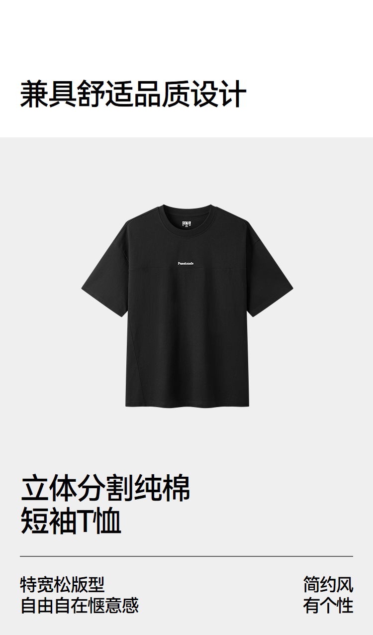 森马短袖T恤男夏季纯棉oversize针织衫2026新款字母绣花分割上衣