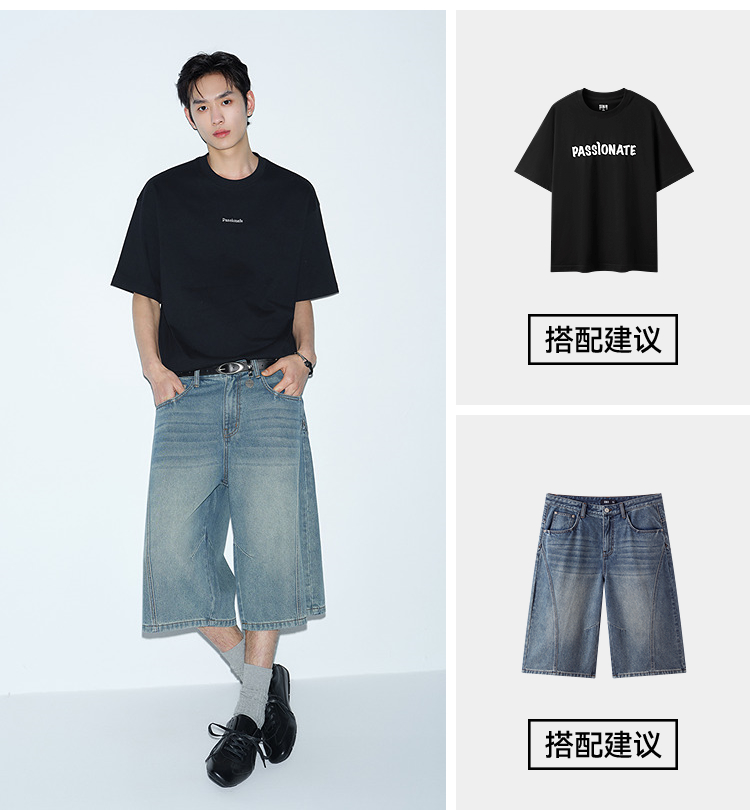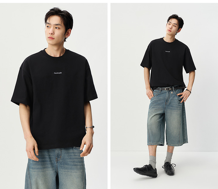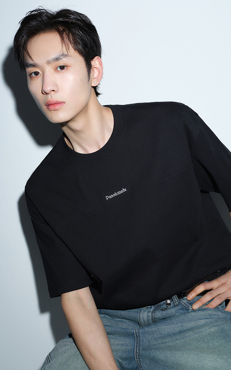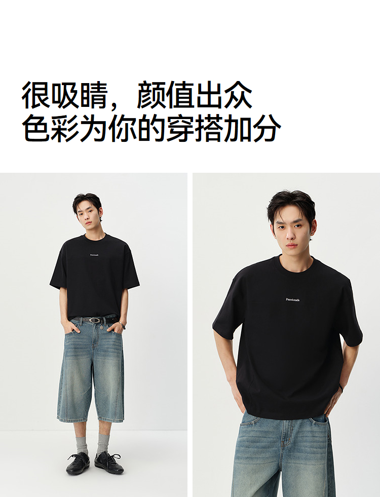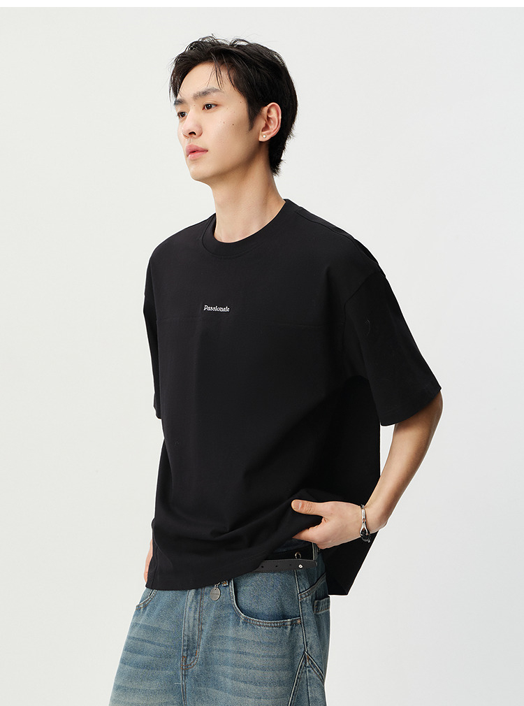 森马短袖T恤男夏季纯棉oversize针织衫2026新款字母绣花分割上衣