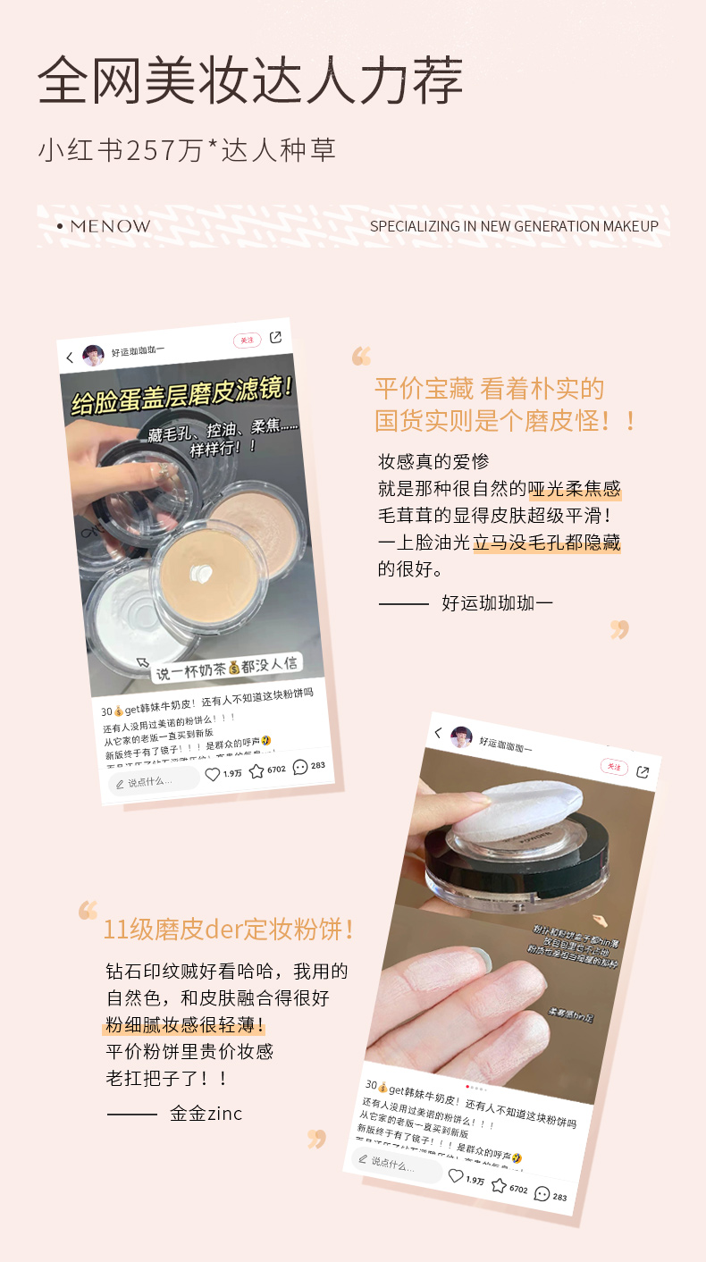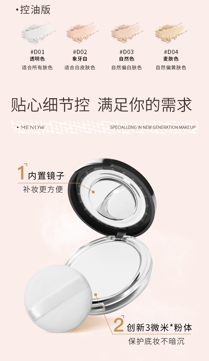 【MENOW】升级款美诺粉饼控油定妆持久新版散粉防水大白饼