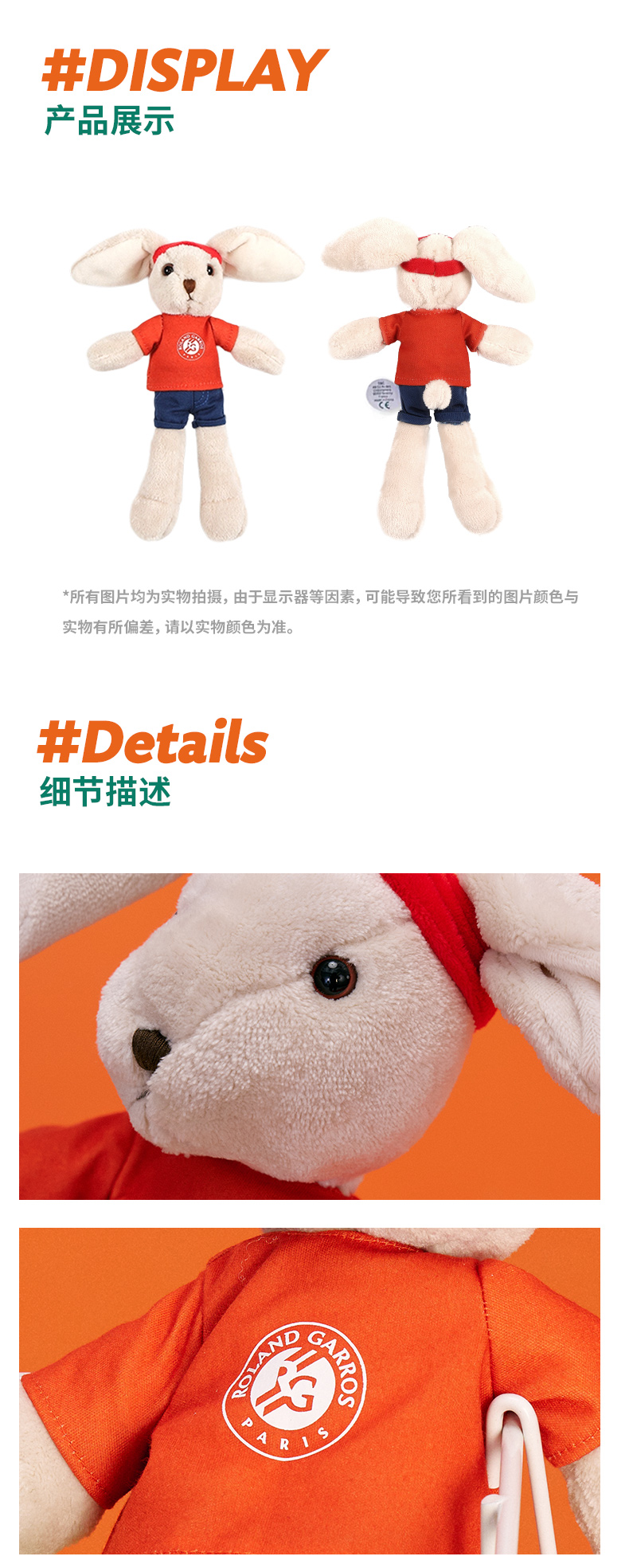 【官方进口】罗兰加洛斯法网吉祥物网球兔子公仔摆件毛绒玩具