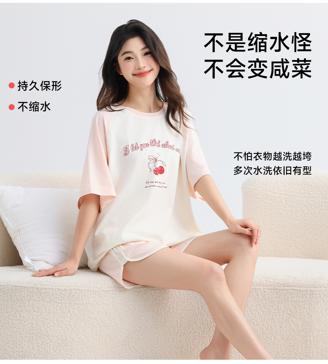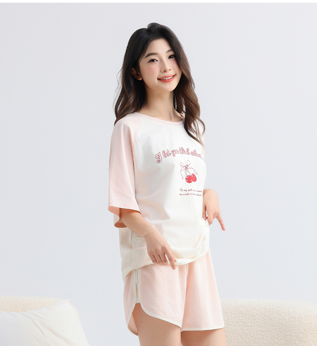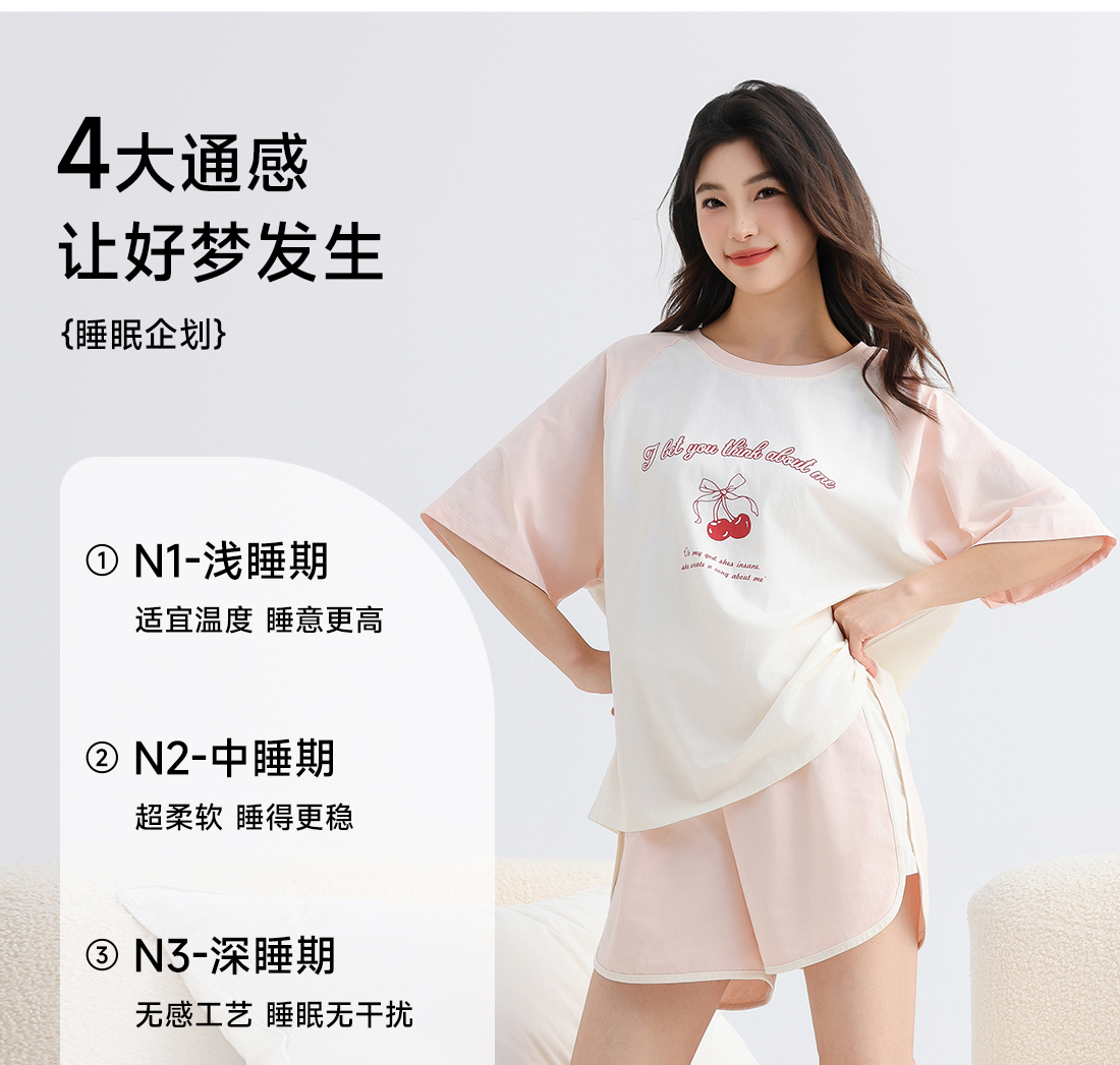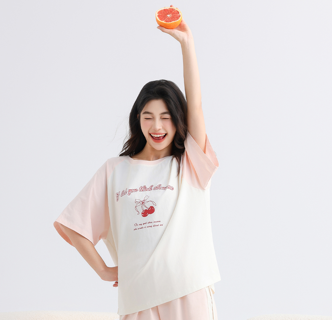 美季美优女士棉质樱桃短袖套装