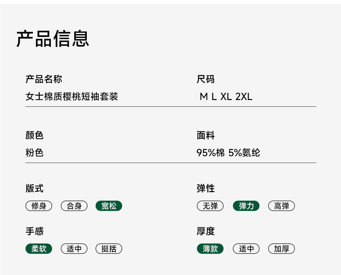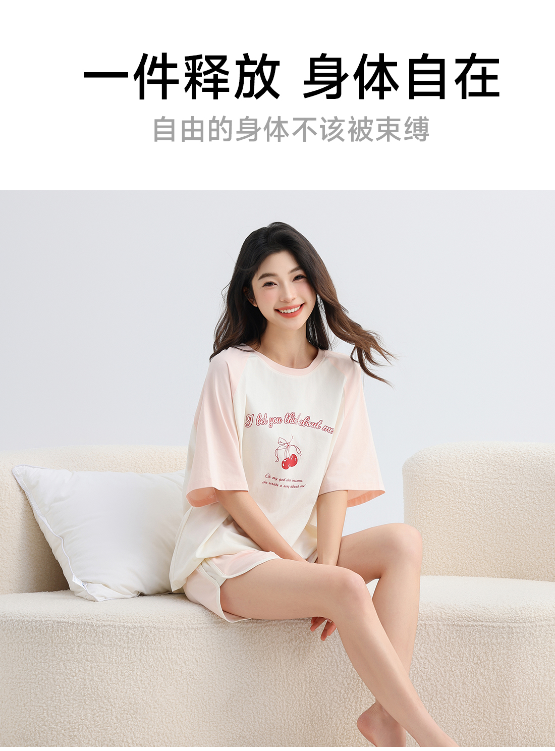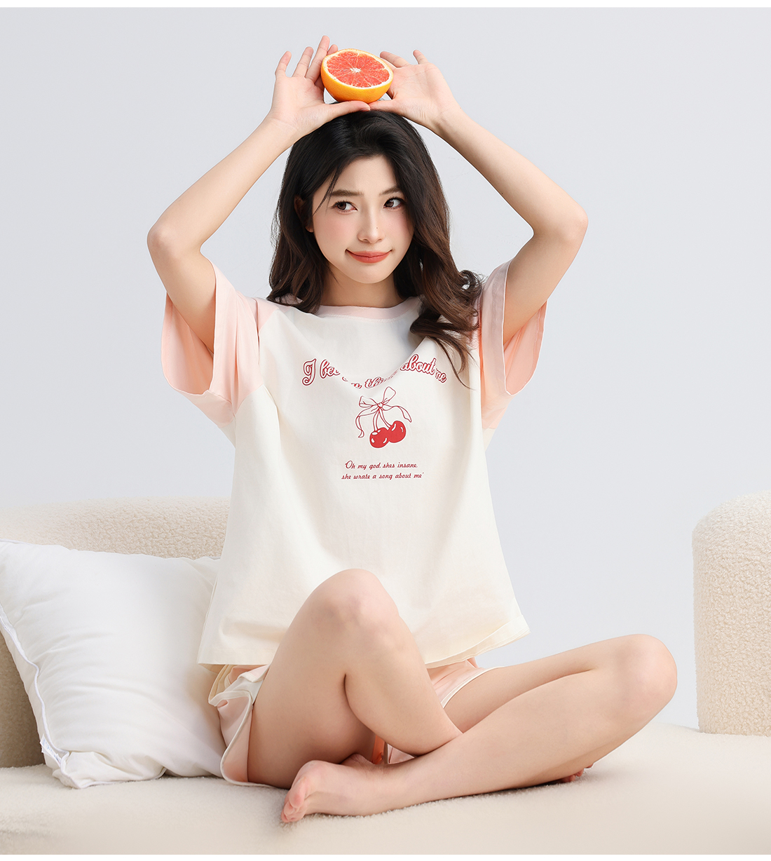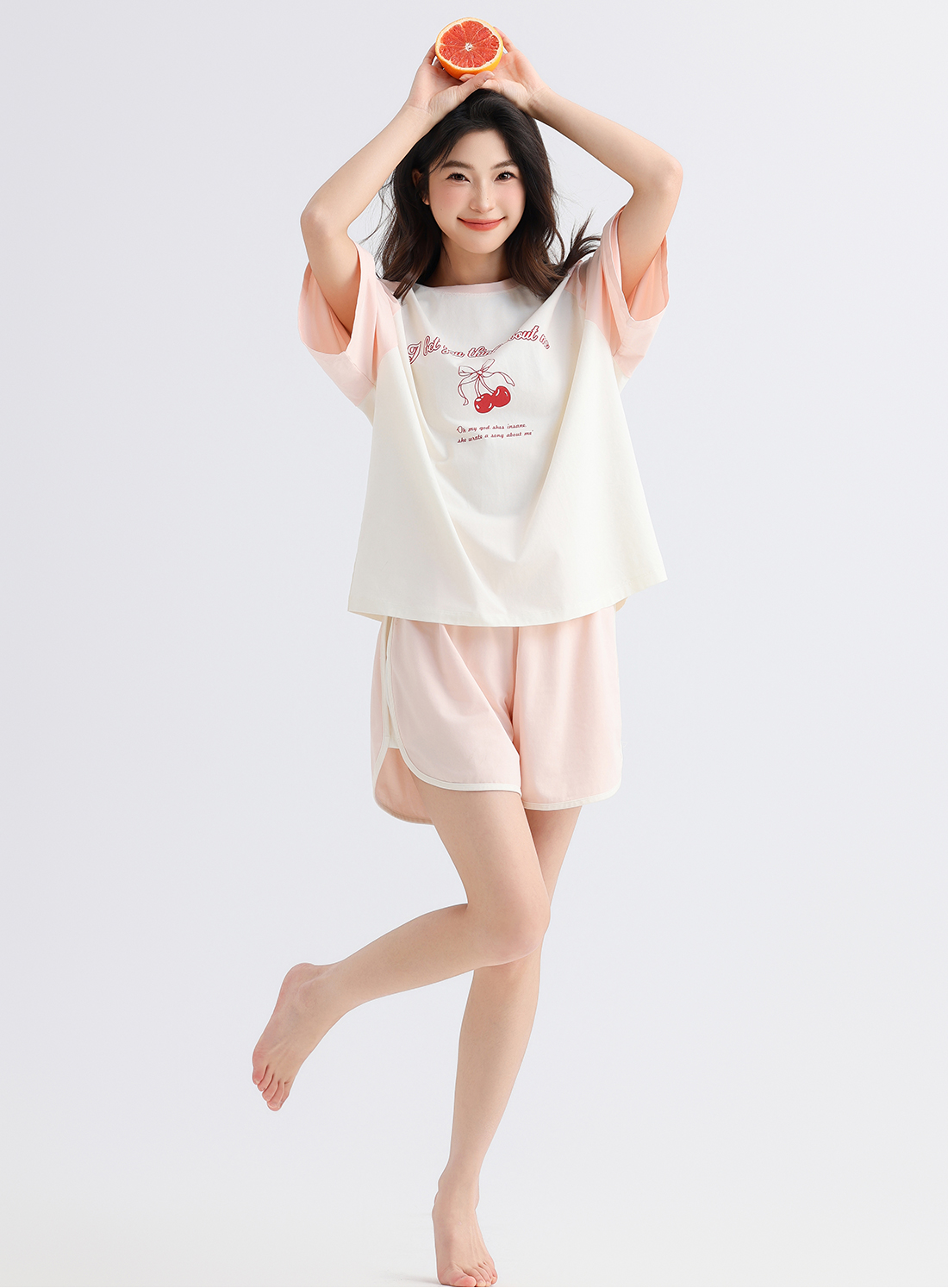美季美优女士棉质樱桃短袖套装