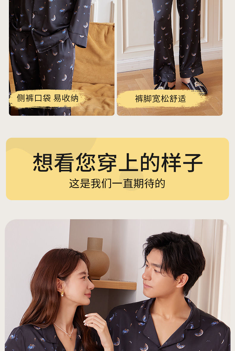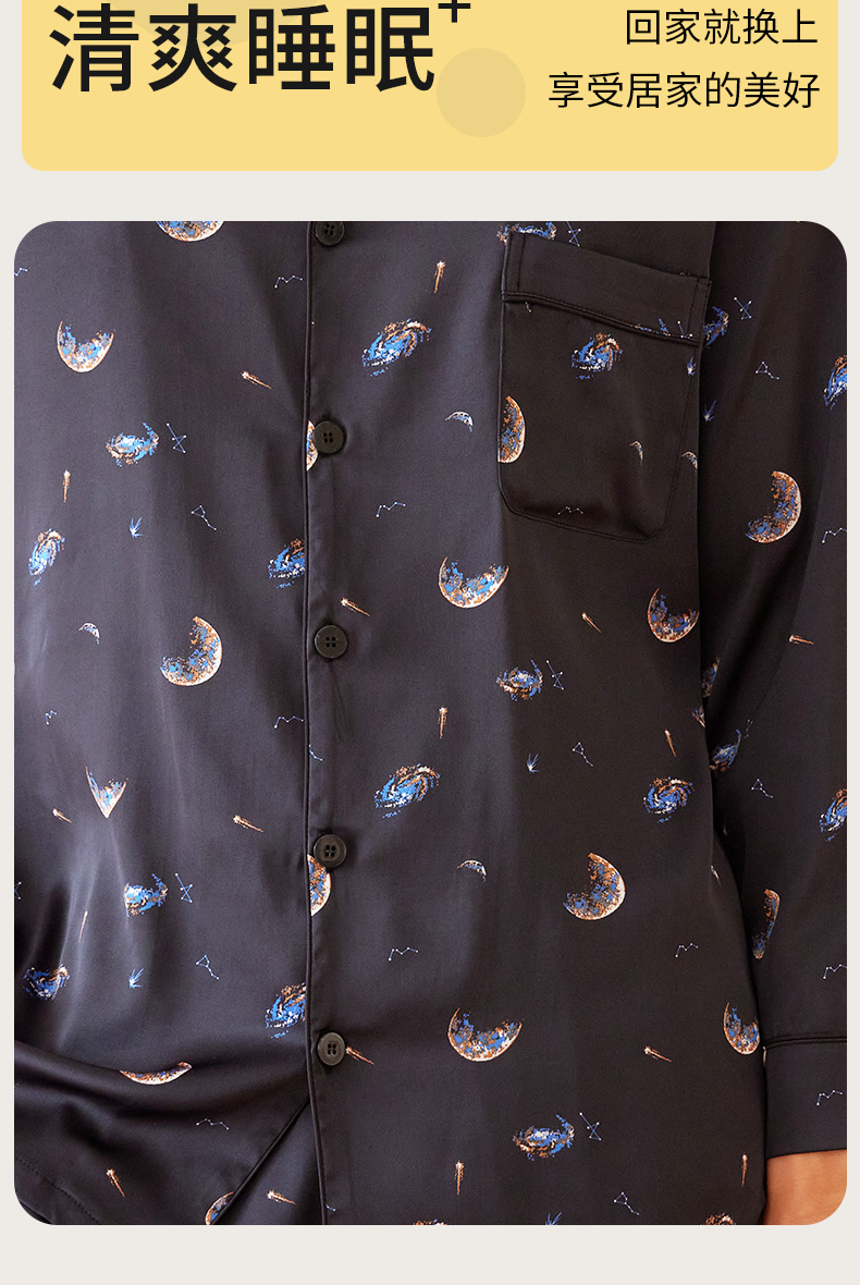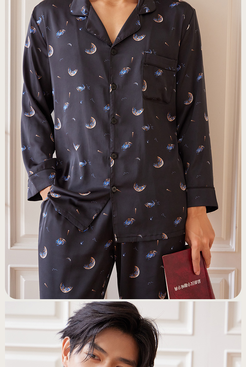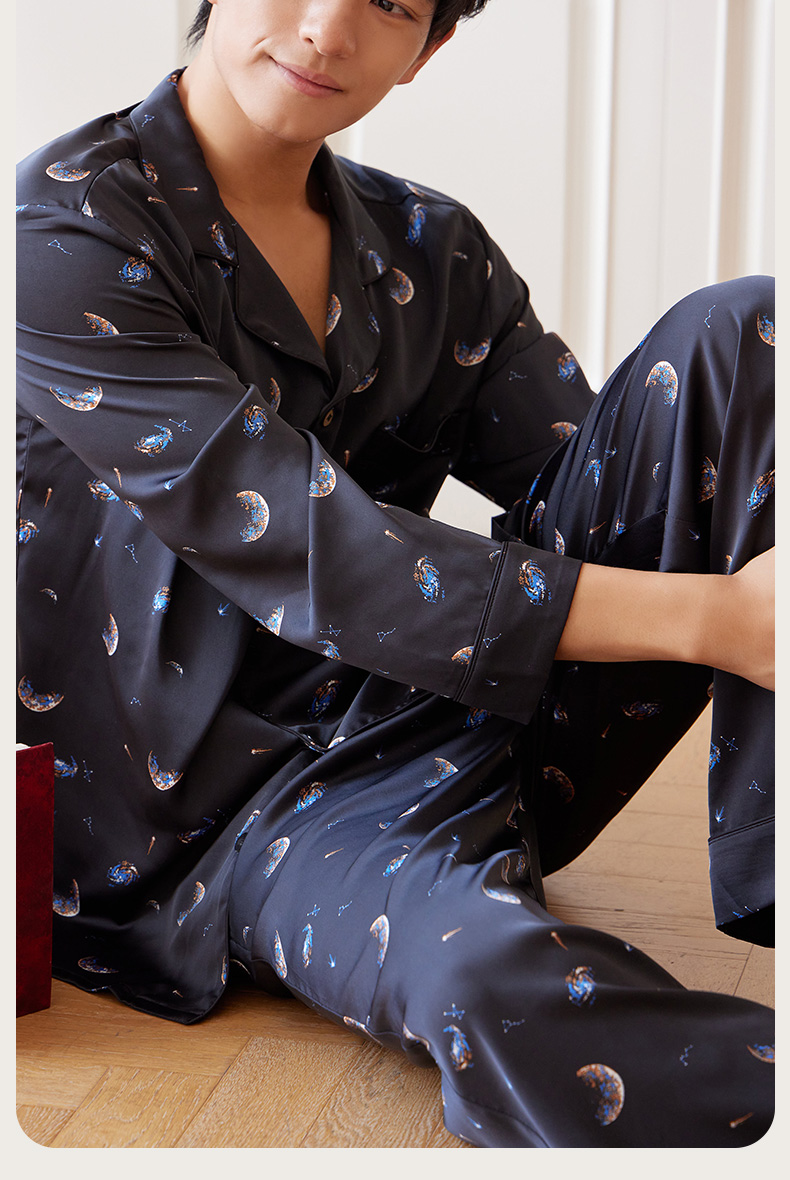 【男款】星河之恋缎面男士套装 印花情侣睡衣 高级牛奶缎面 亲肤透气垂坠有质感 睡衣家居服