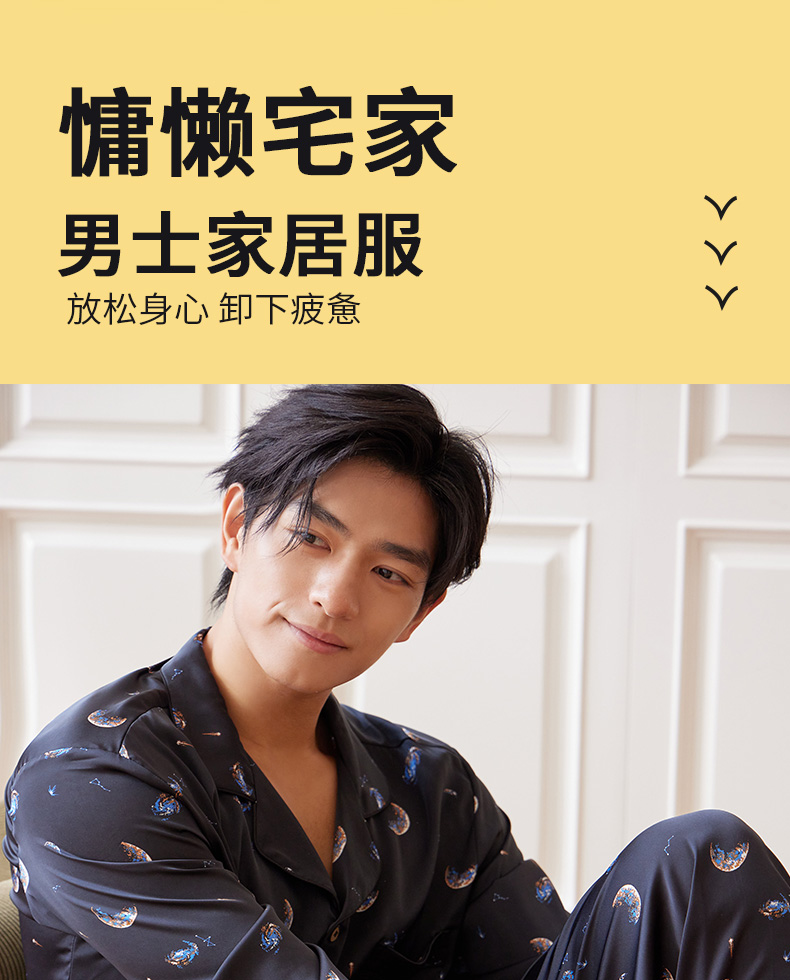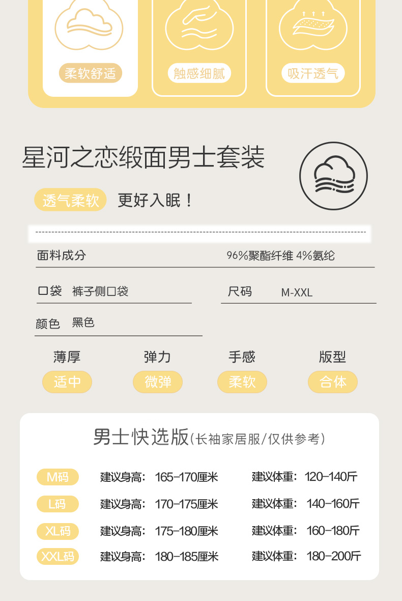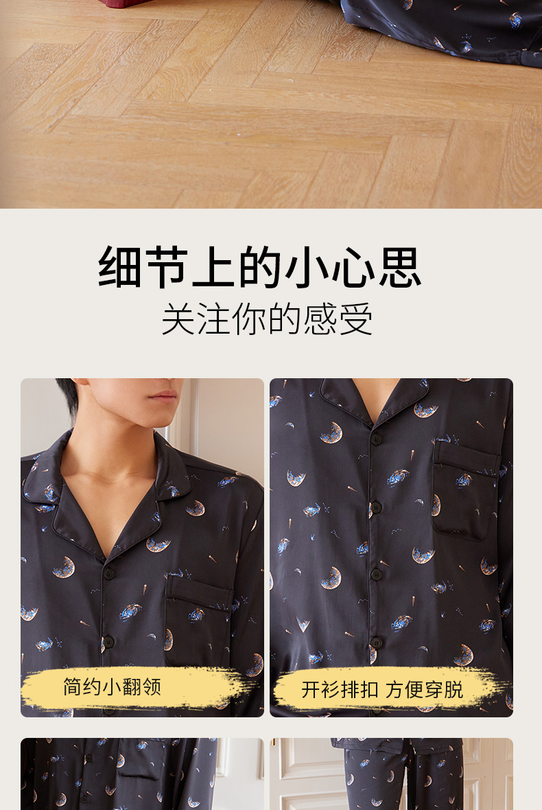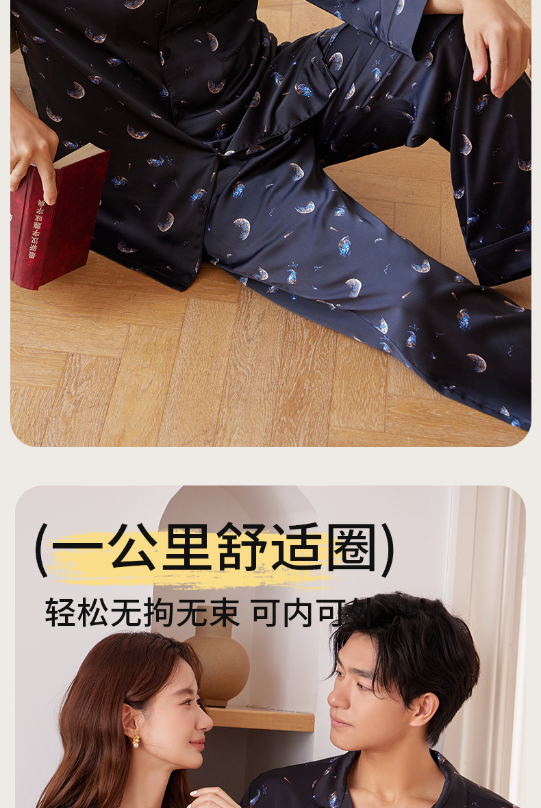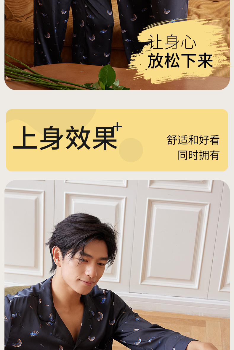 【男款】星河之恋缎面男士套装 印花情侣睡衣 高级牛奶缎面 亲肤透气垂坠有质感 睡衣家居服