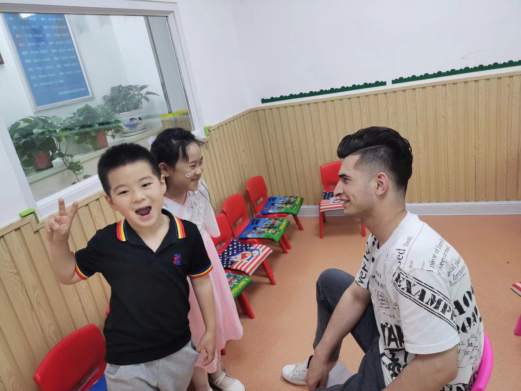 课程内容:一次课一个内容,天气、感觉、星期、形状、时间、工作、运动、城市、水果、食品等常用口语交际场景