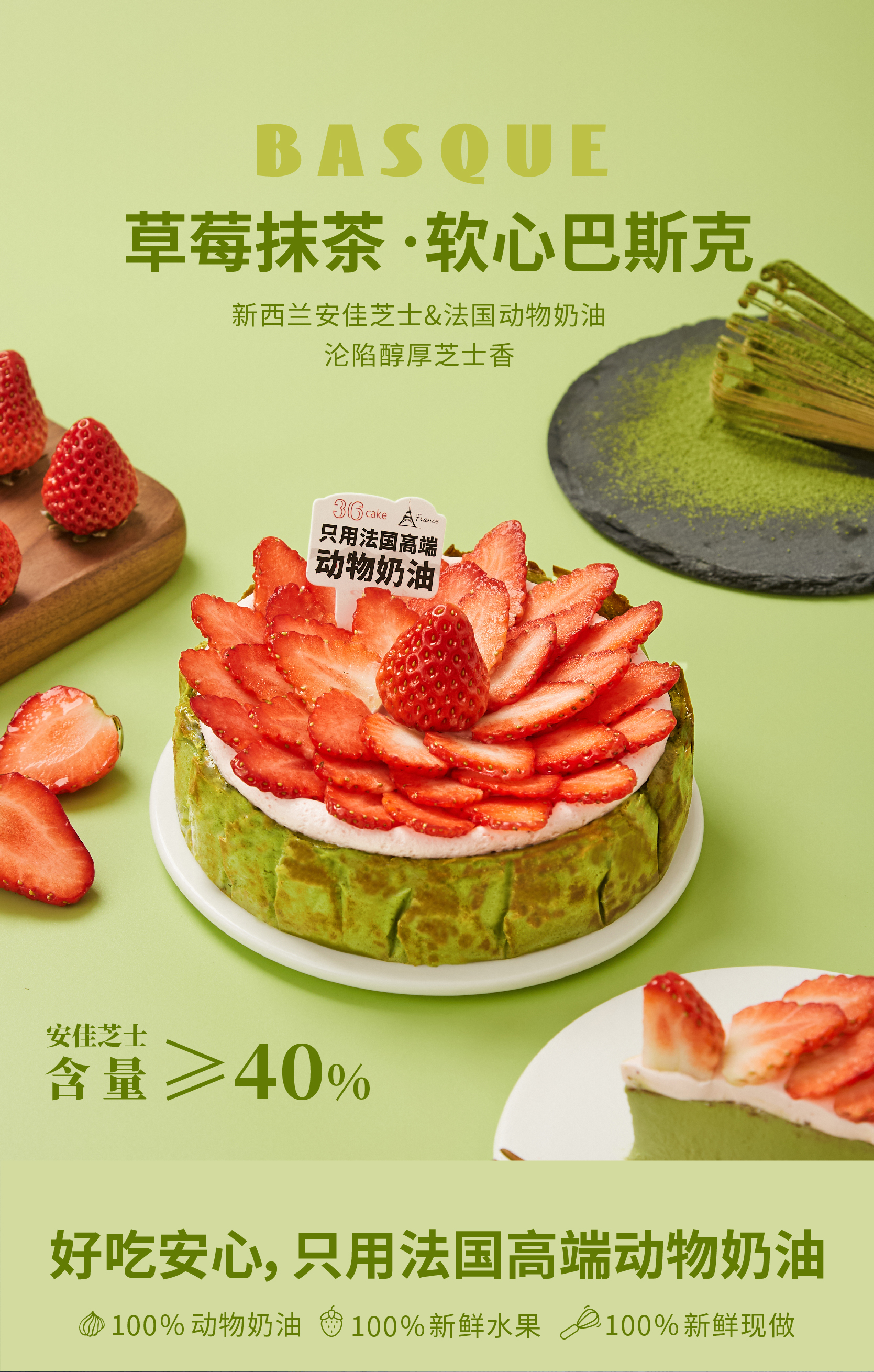 草莓抹茶·软心巴斯克 【仅限深圳地区可配送】 | 36 CAKE