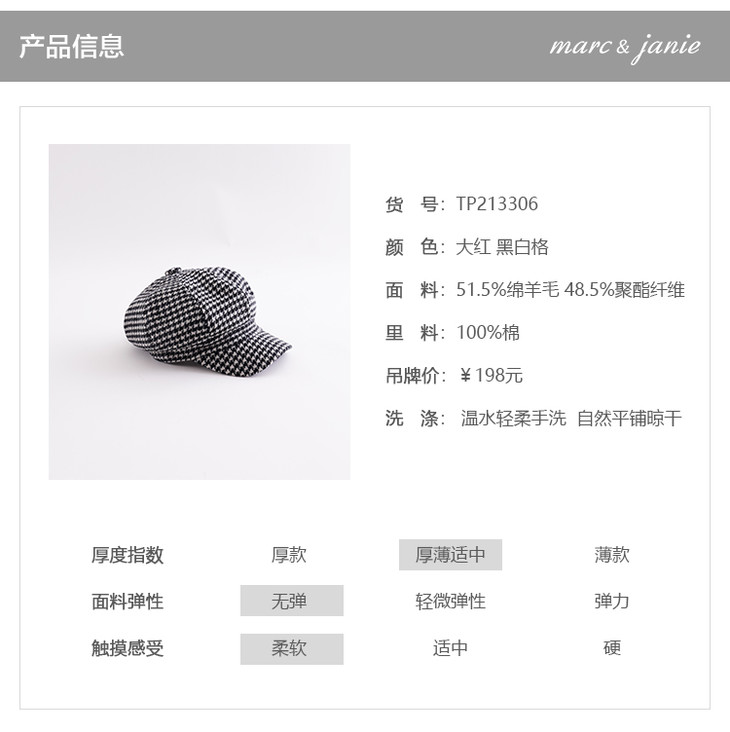 【马克珍妮 法式系列】新款秋装 女童儿童羊毛画家帽子213306