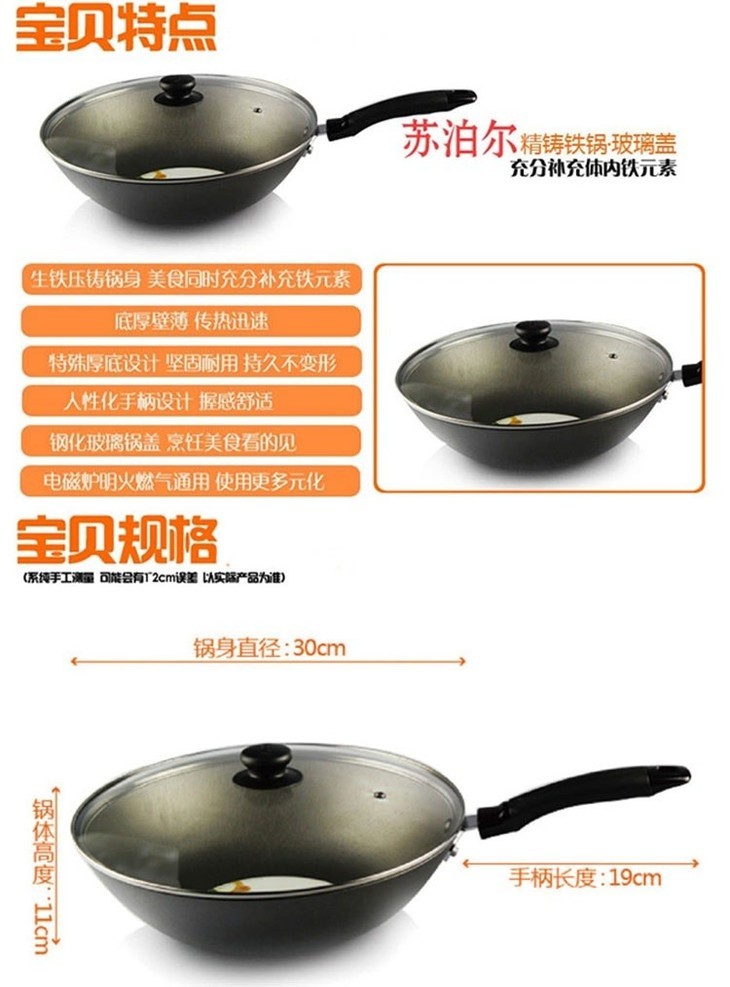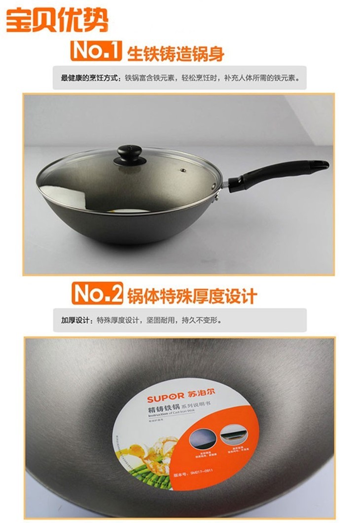 两张魅力A卡+苏泊尔铁锅 电磁炉明火燃气通用炒锅-CG