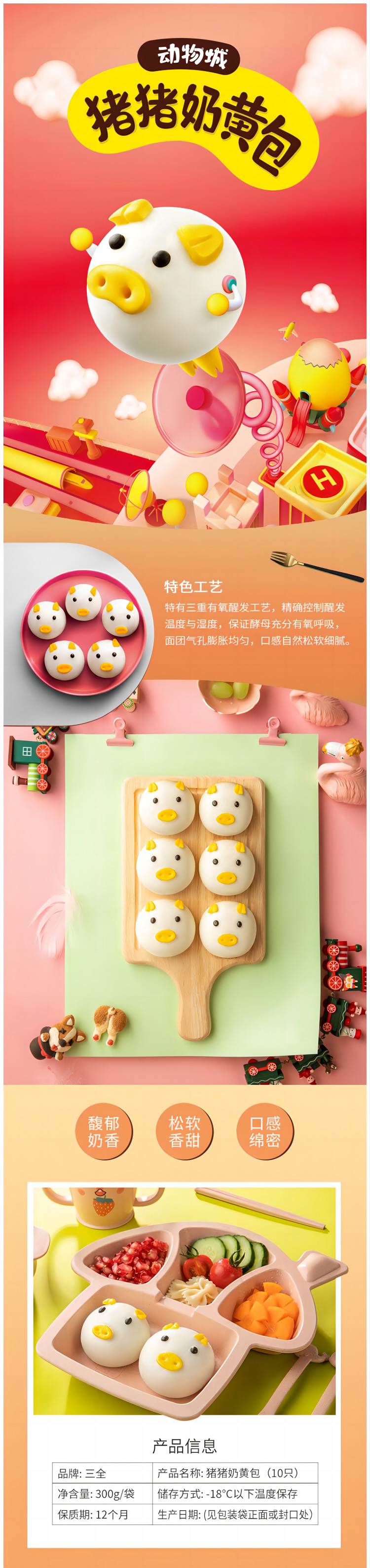 三全 动物城系列 猪猪奶黄包/牛牛红豆包 300g*2 (商)