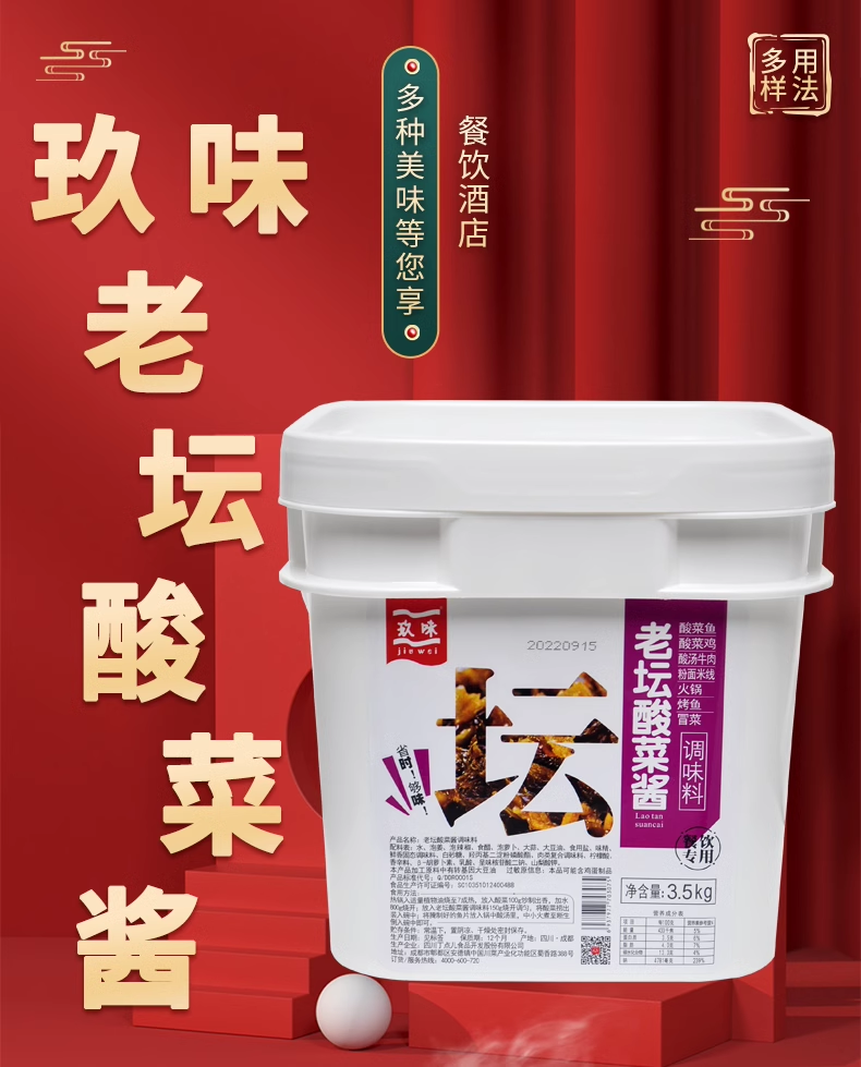 玖味老坛酸菜酱3.5kg桶装酸菜鱼酸汤牛肉火锅调味料餐饮专用酱料