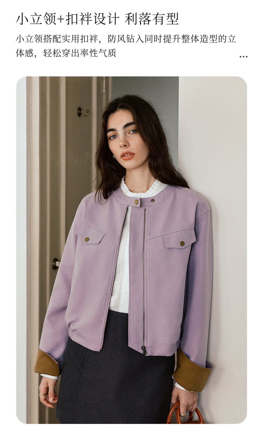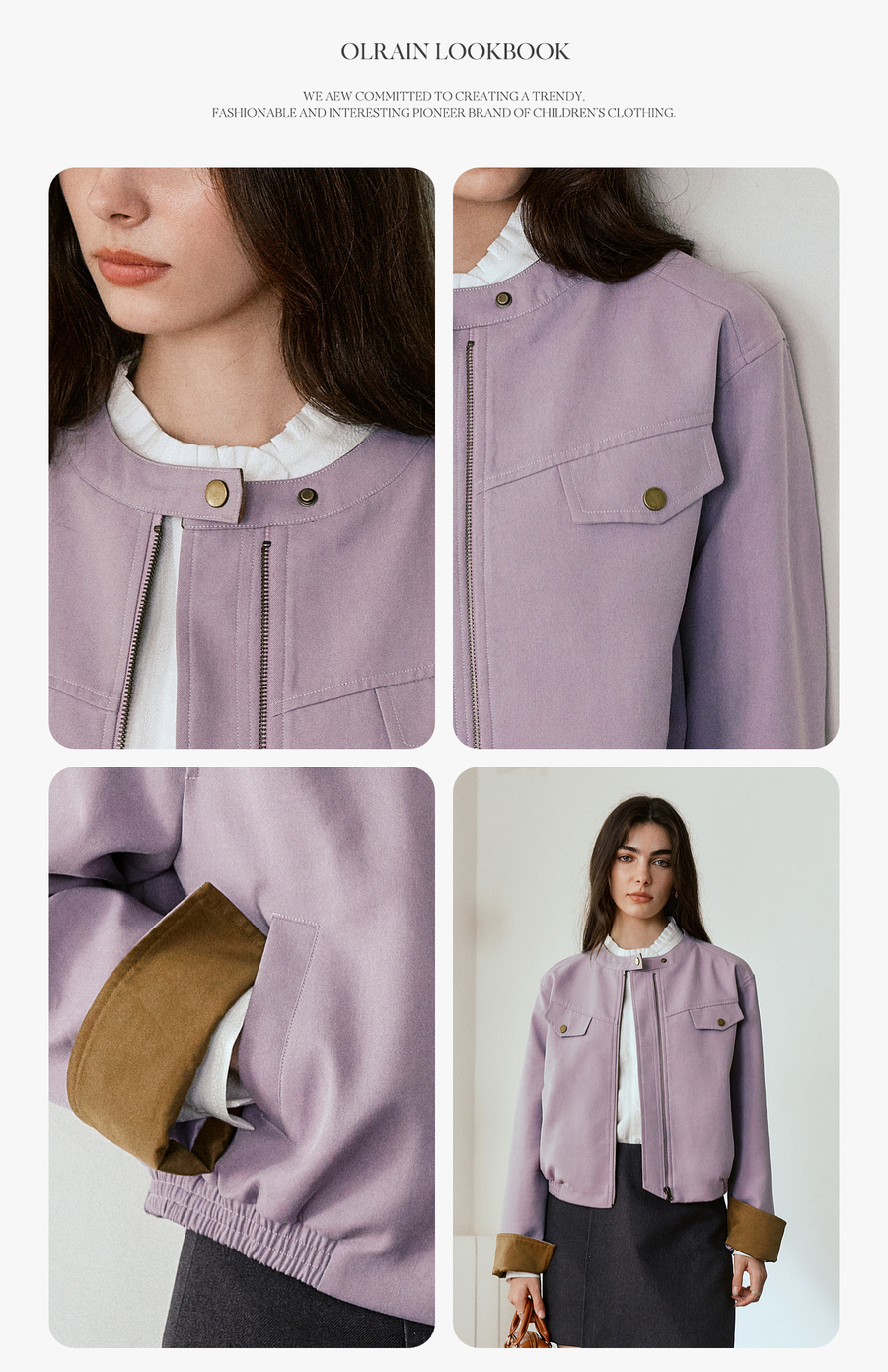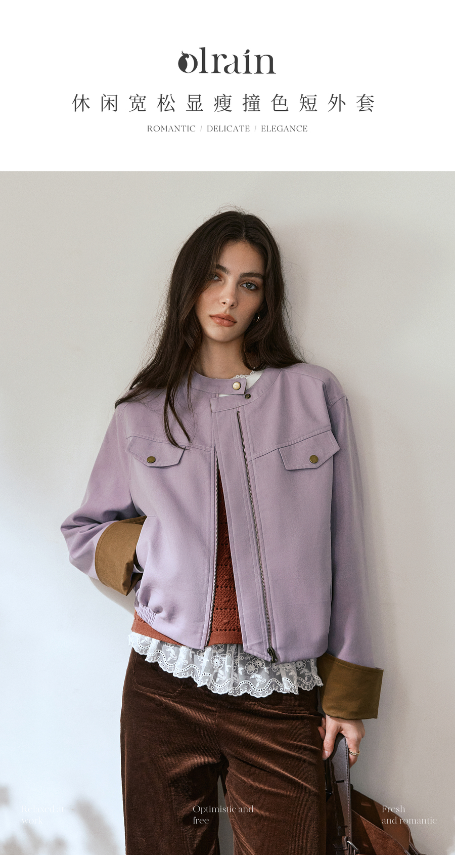 OLrain欧芮儿休闲宽松撞色短外套女秋季2025新款气质时尚夹克上衣