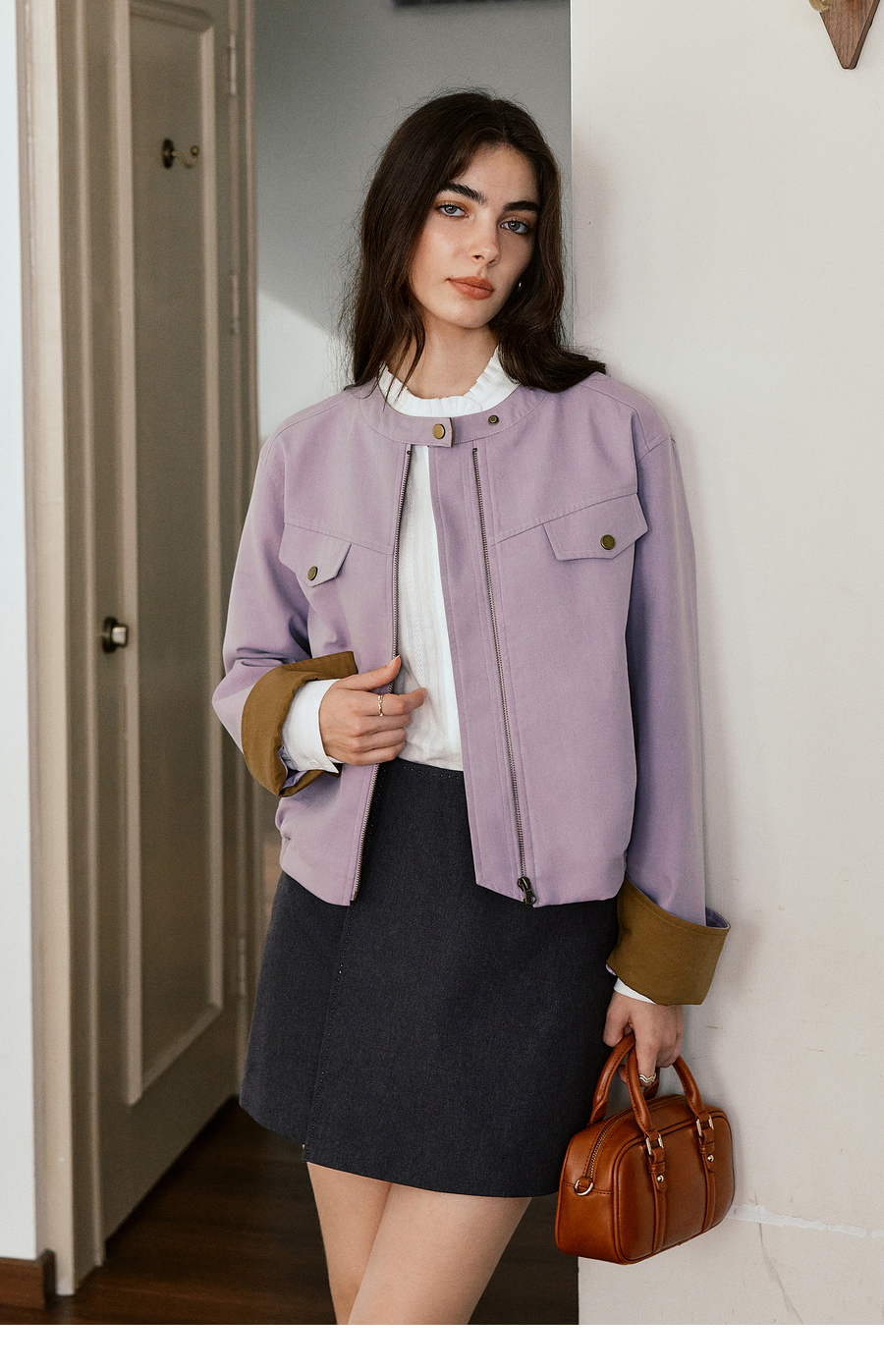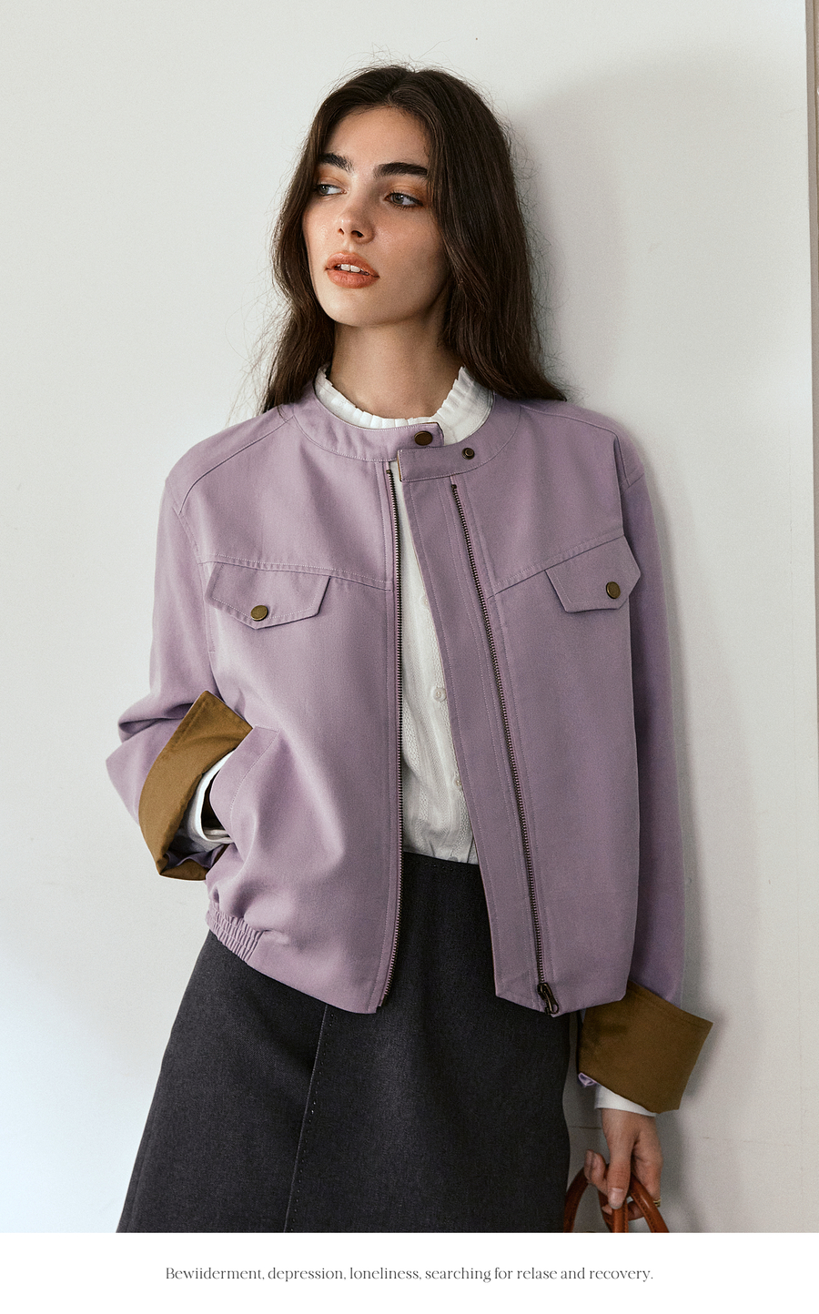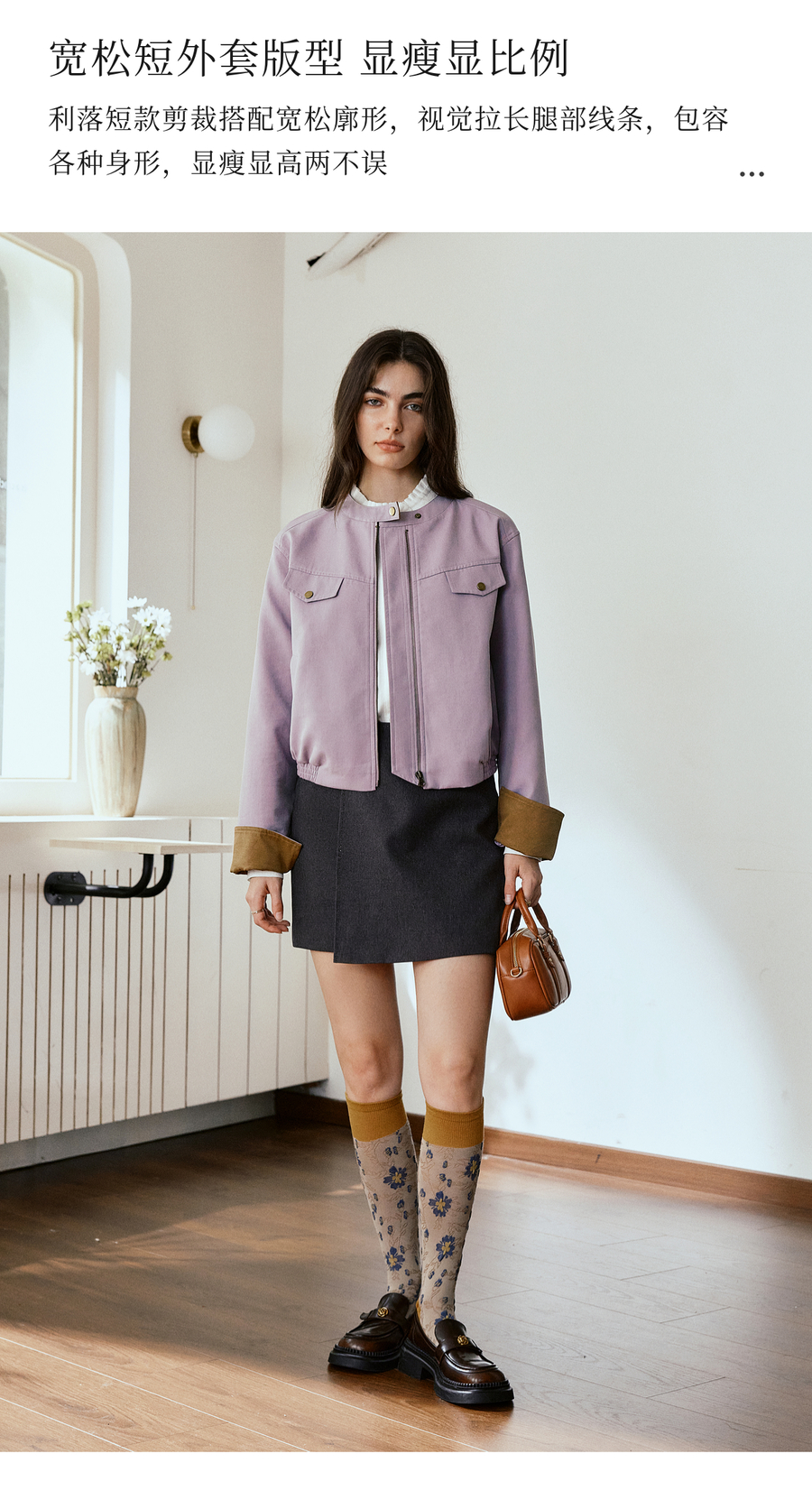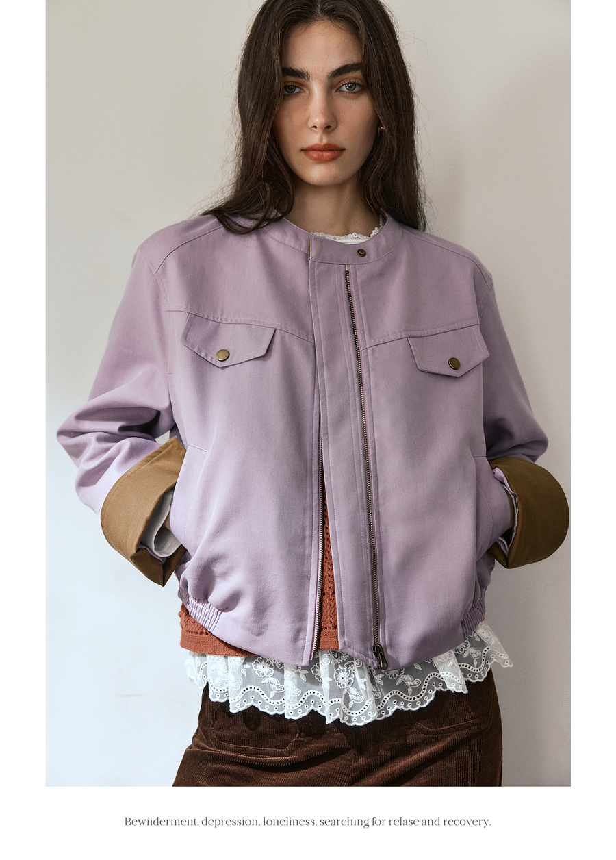 OLrain欧芮儿休闲宽松撞色短外套女秋季2025新款气质时尚夹克上衣