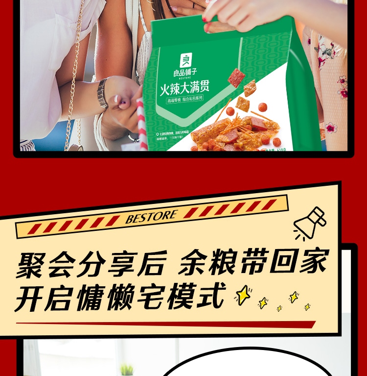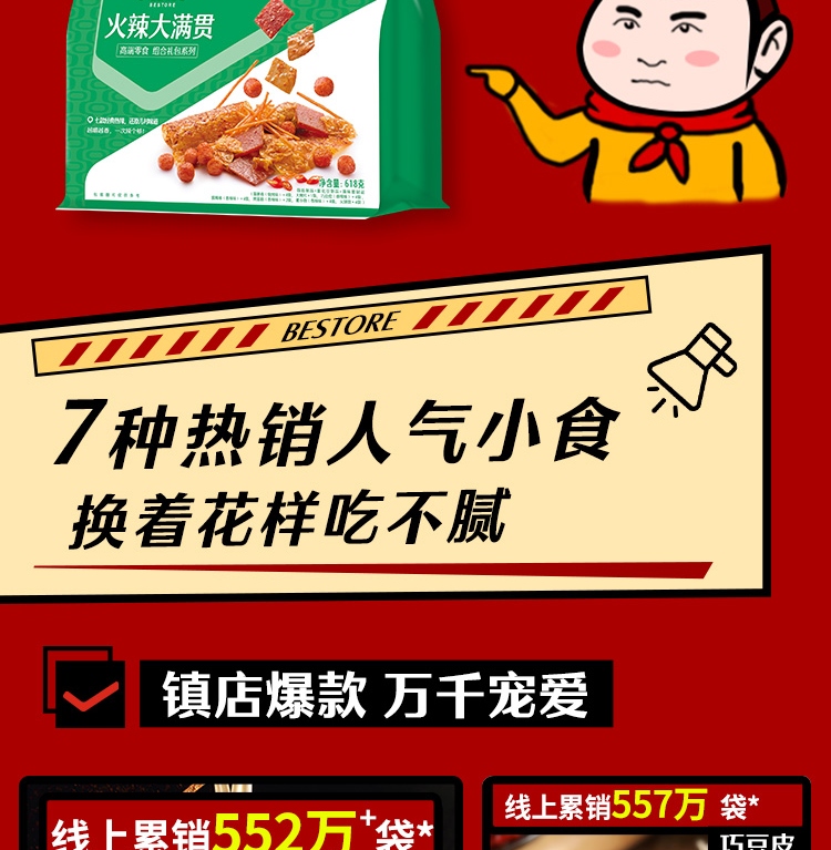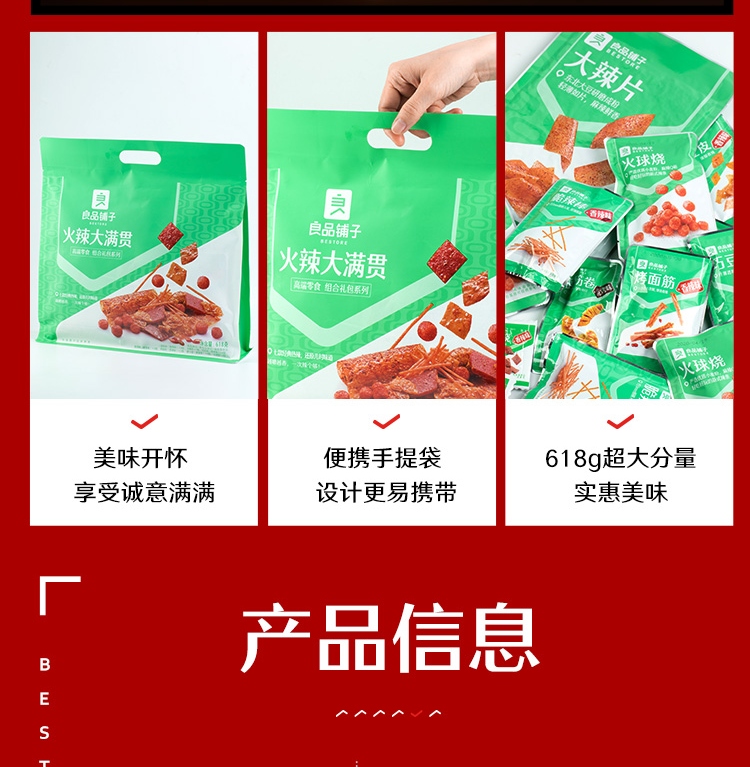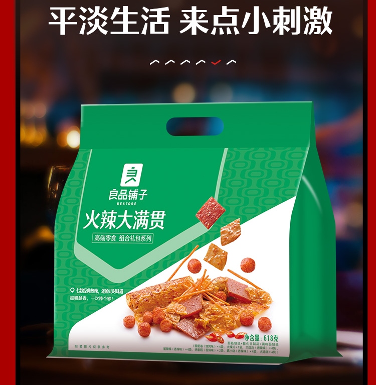 良品铺子 火辣大满贯618g零食大礼包网红辣条大辣片面筋卷巧豆皮豆干素肉休闲零食办公室宿舍怀旧小吃量贩装