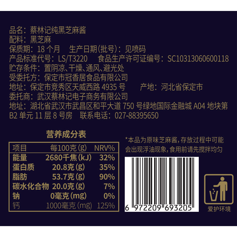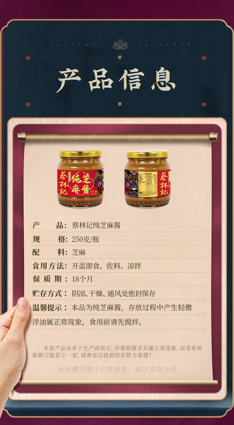 【3瓶】蔡林记芝麻酱3瓶拌面酱火锅酱石磨研磨