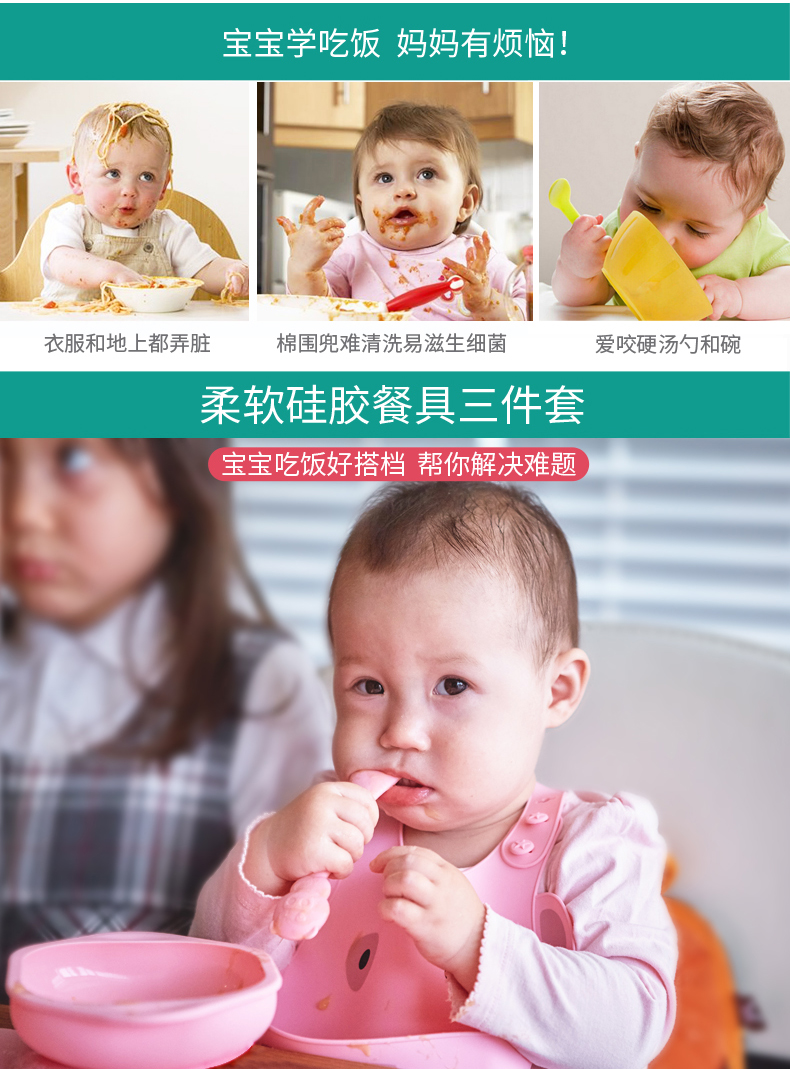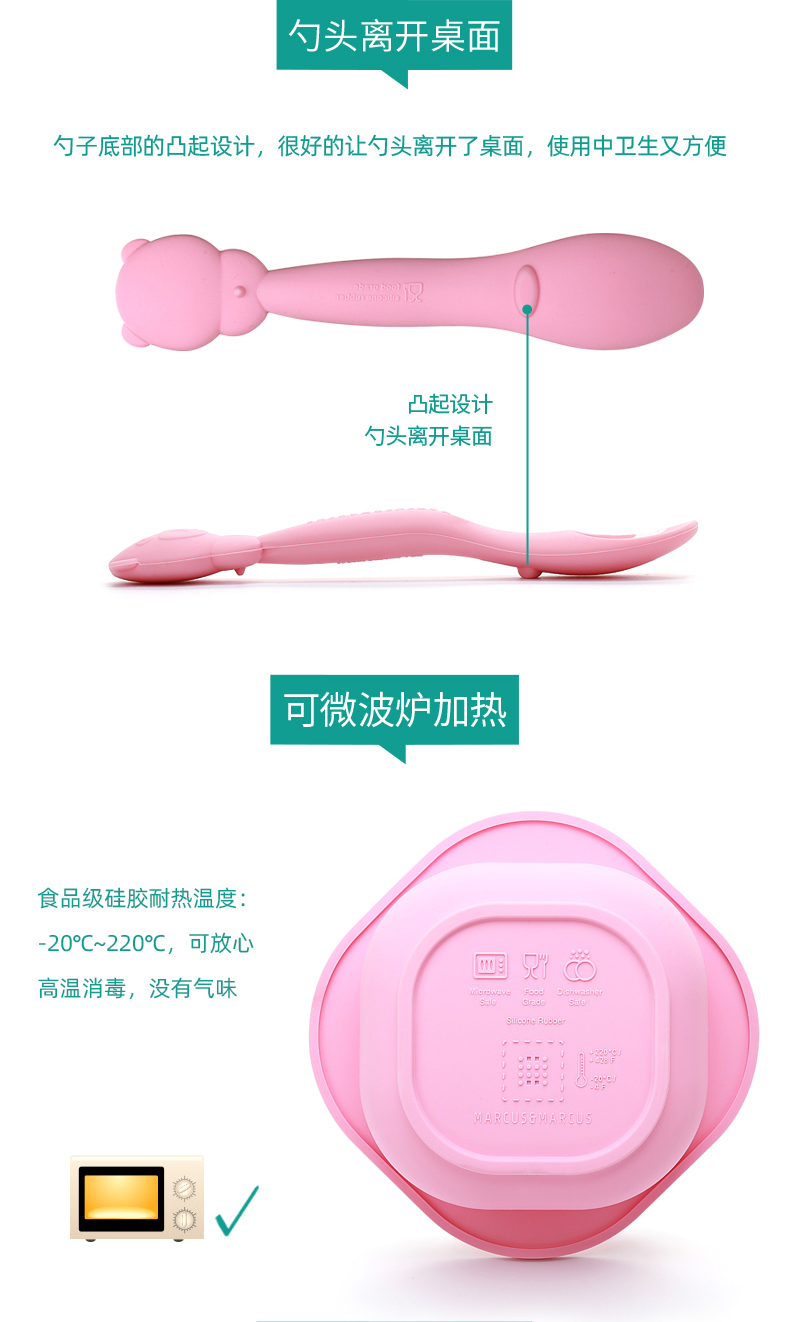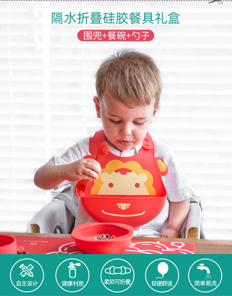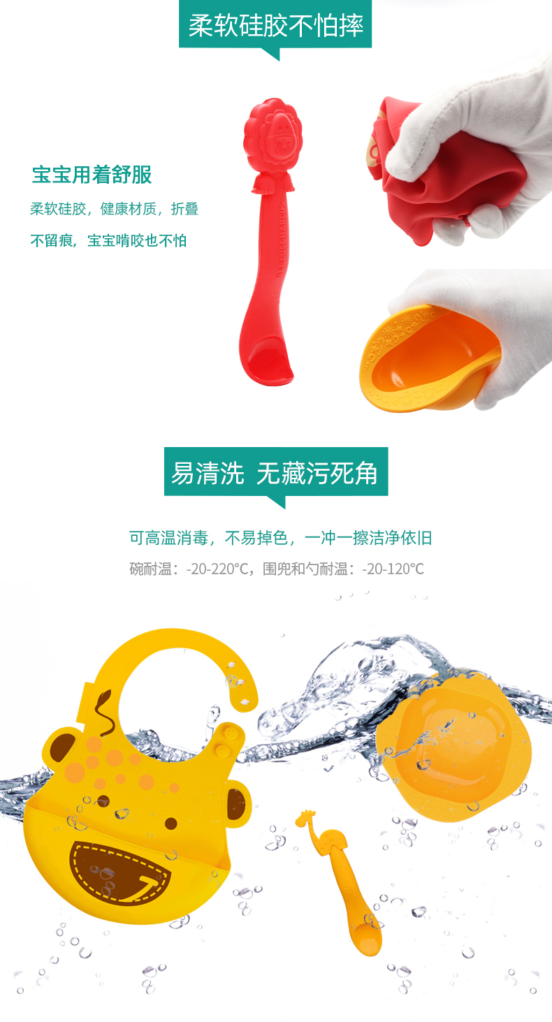加拿大 Marcus婴儿硅胶碗勺围兜喂食三件套 婴儿喂食套装
